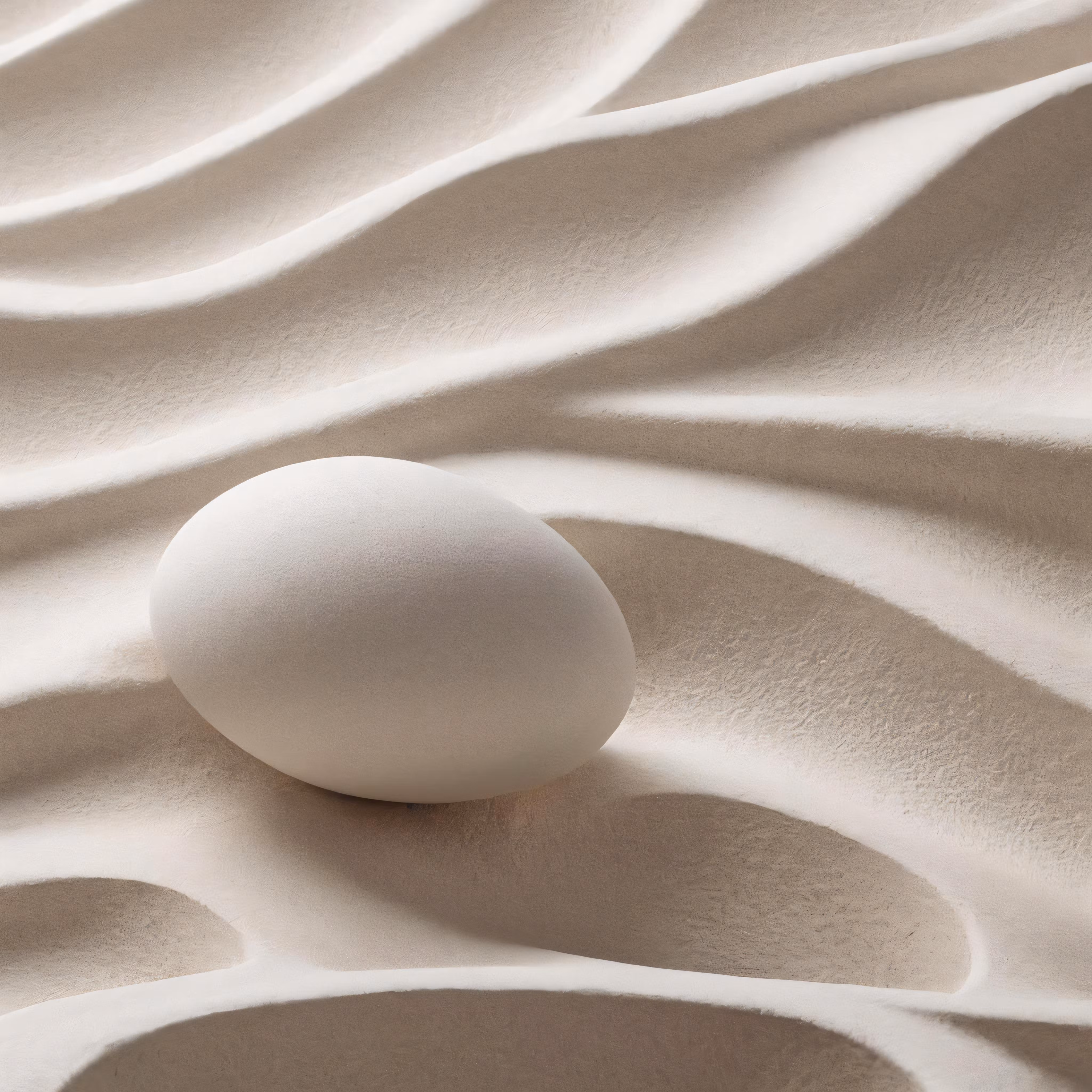 High resolution picture, free to use, an egg on sand, with small wave in the background