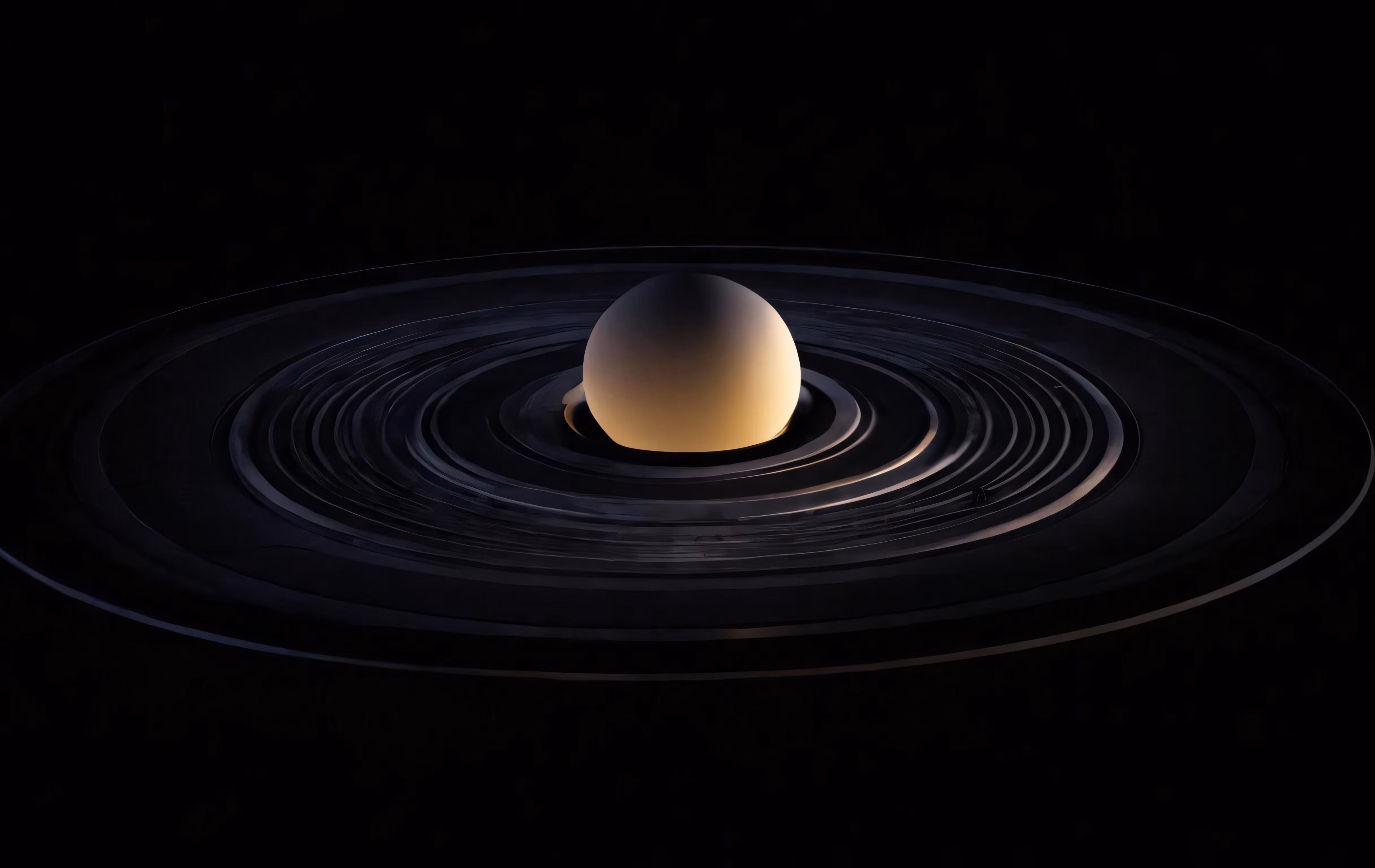 High resolution picture, free to use, an egg on top of a black disk in the dark