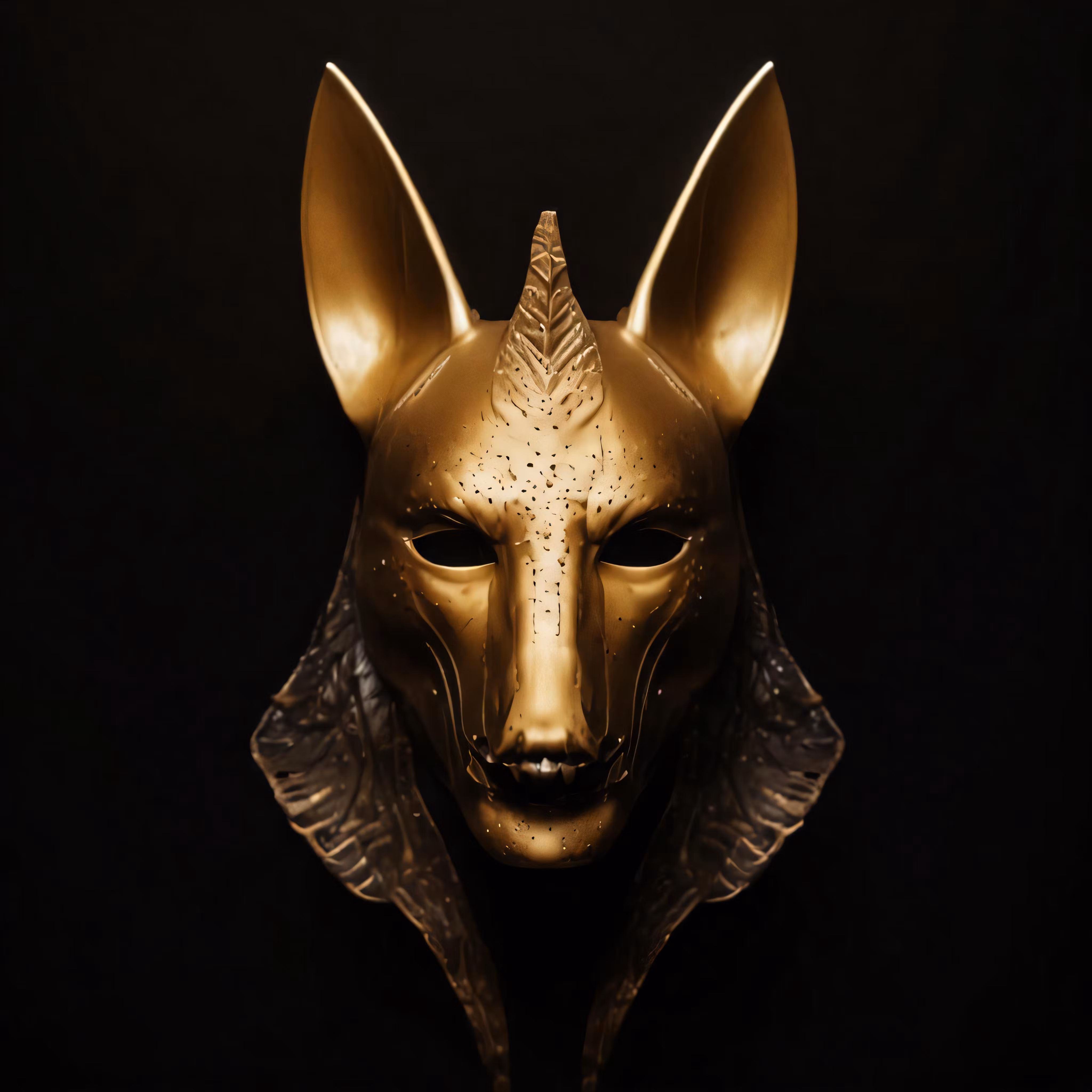 High resolution picture, free to use, an egyptian mask with elaborate patterns and ears