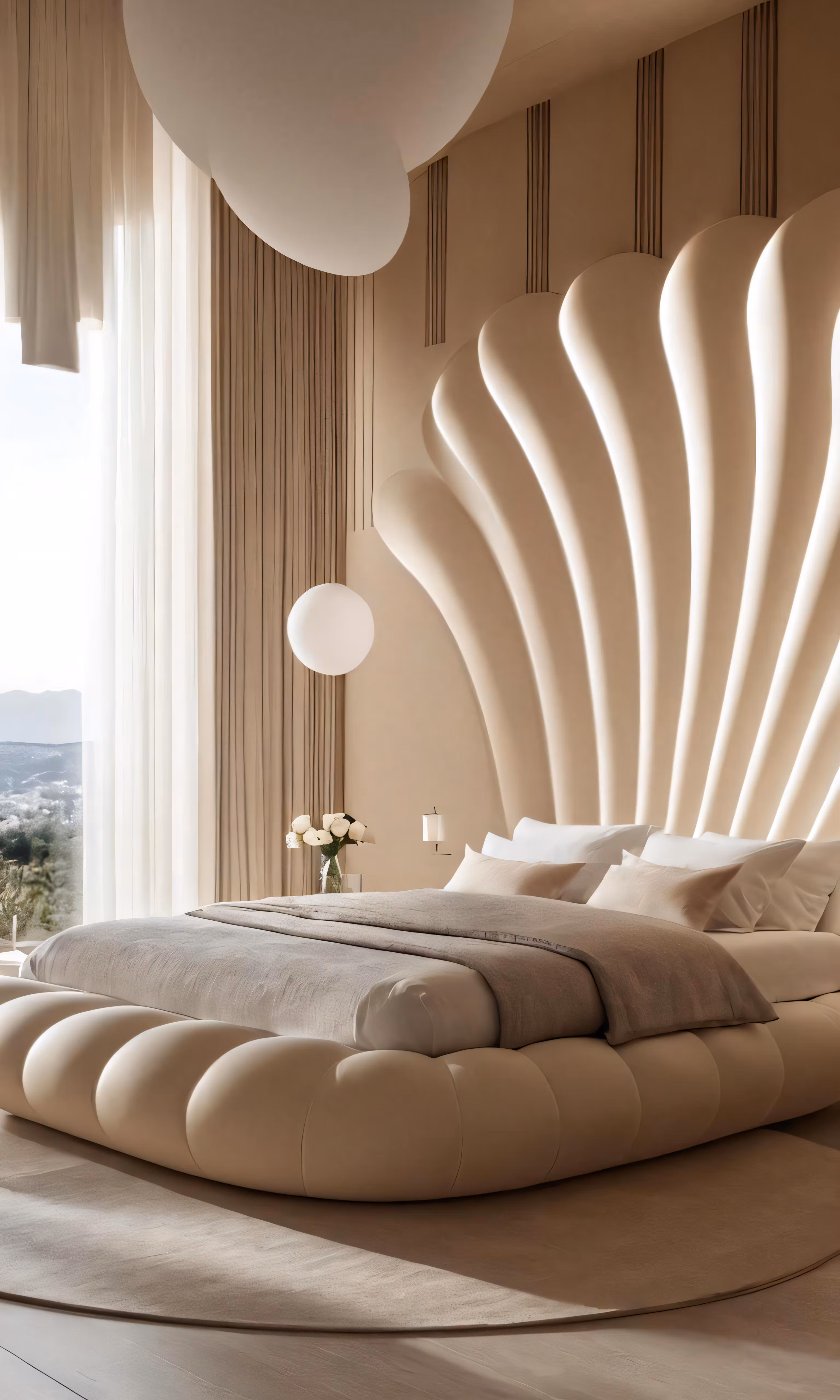 High resolution picture, free to use, an elegant bedroom with modern furnishings and high ceilings