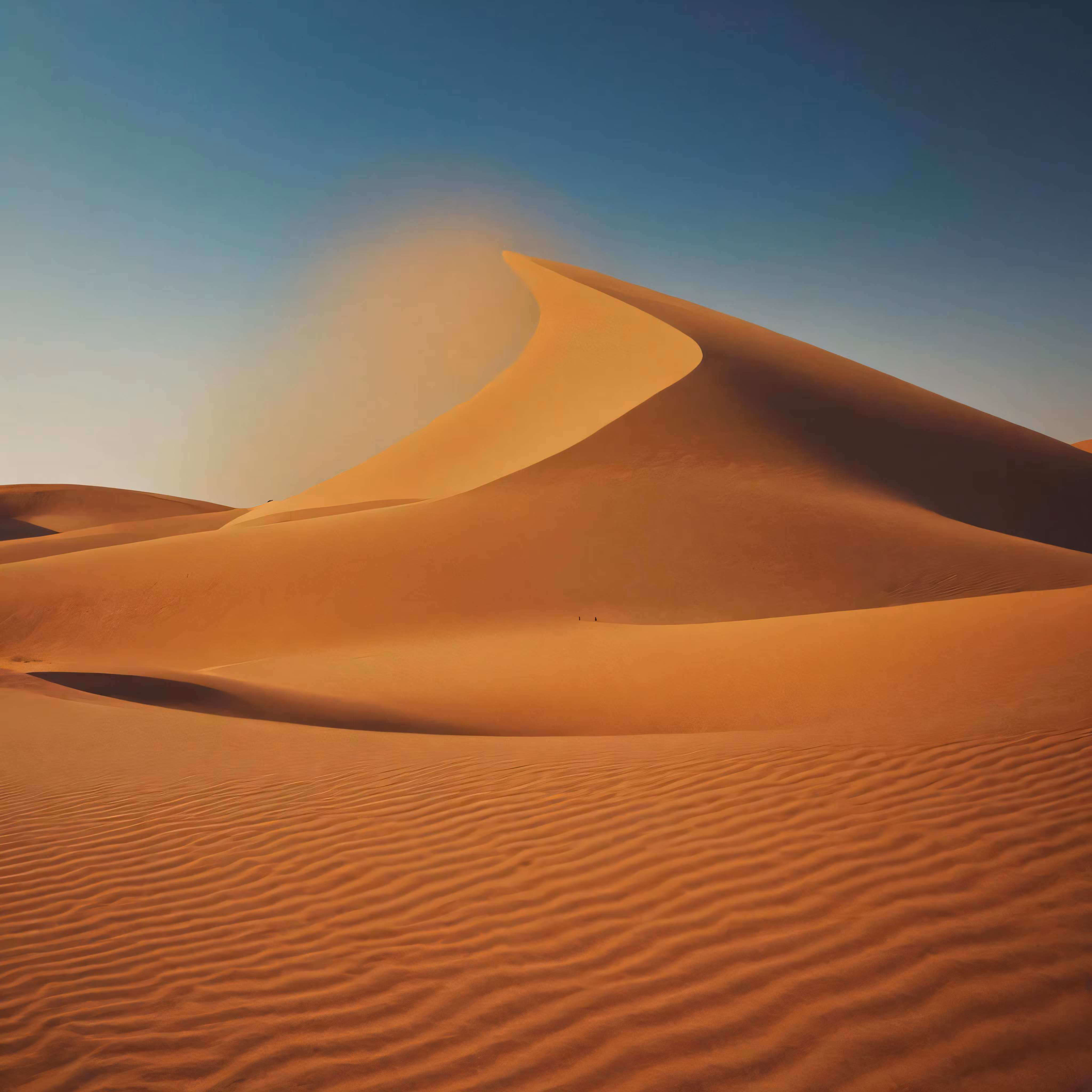 High resolution picture, free to use, an empty desert with sand dunes and a very long exposure of the sun