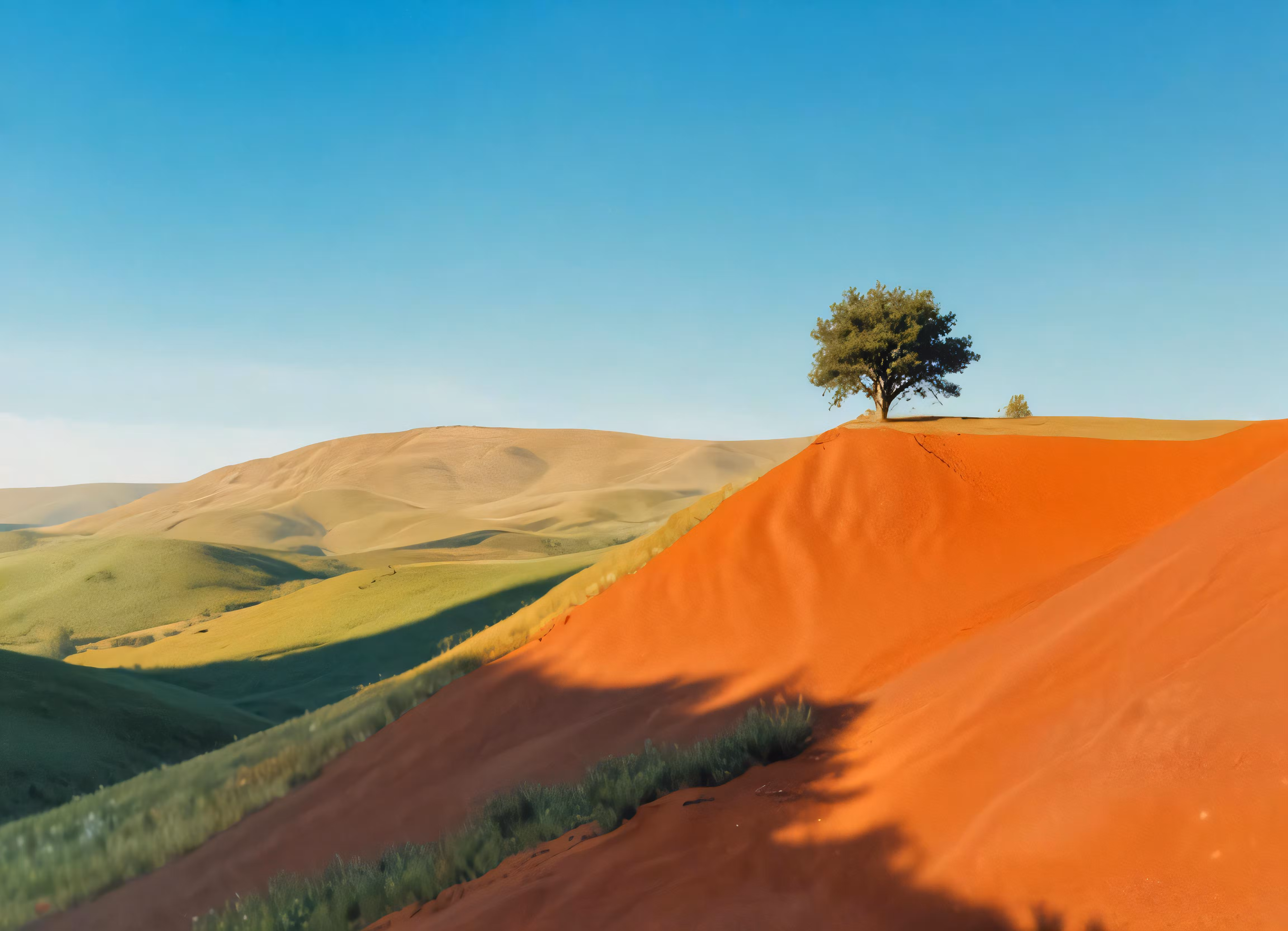 High resolution picture, free to use, an empty tree on top of an orange hill
