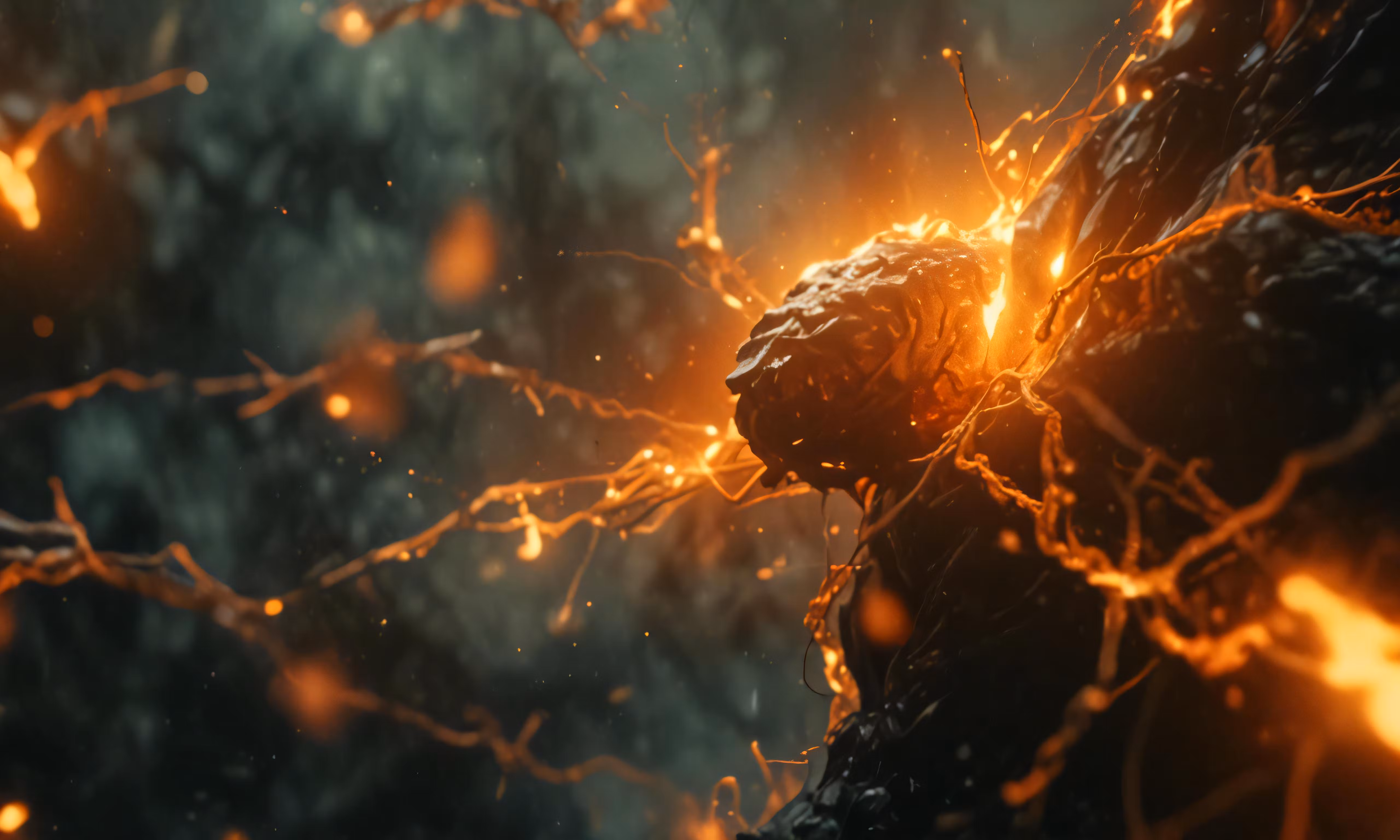 High resolution picture, free to use, an exploding piece of stone in front of a forest filled with trees