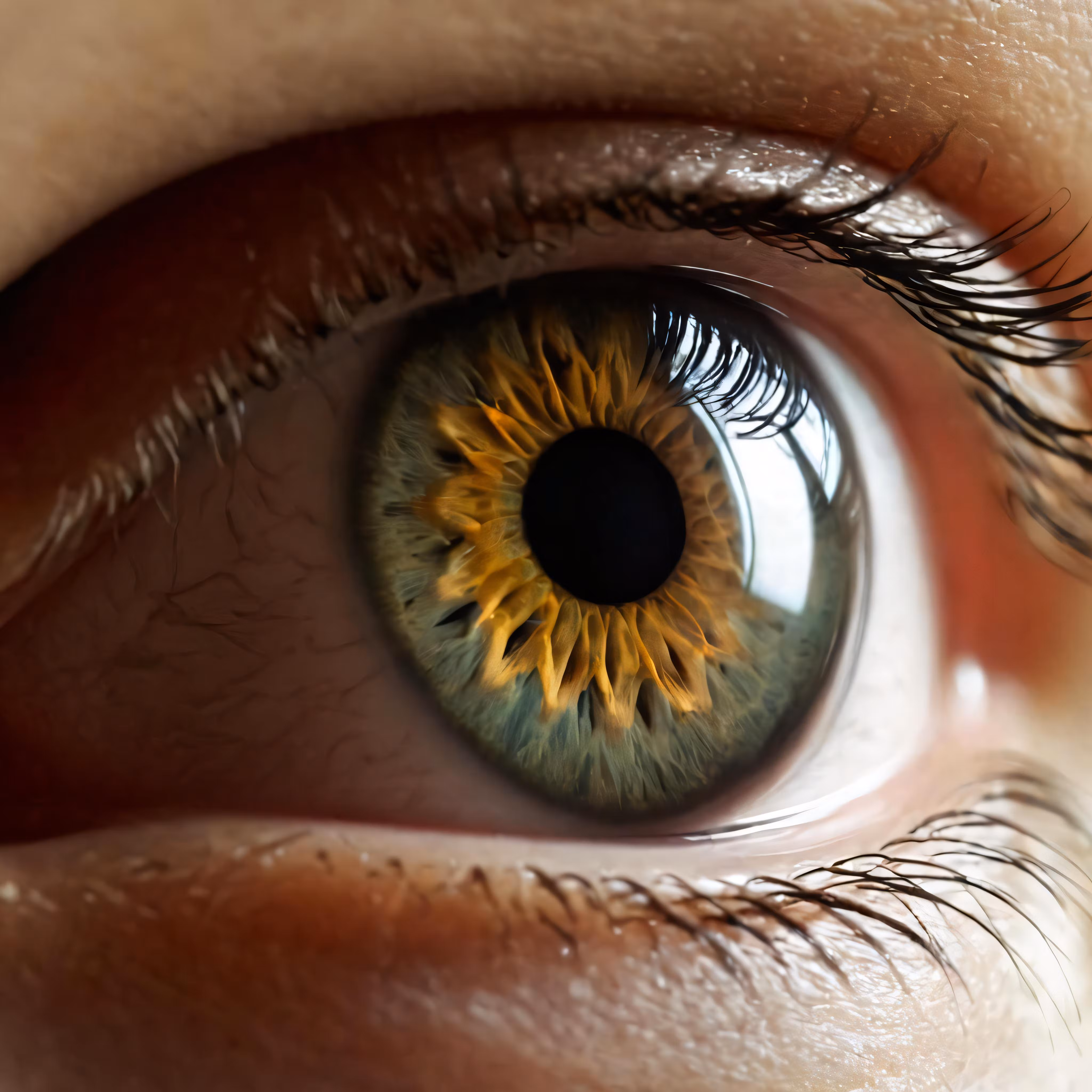 High resolution picture, free to use, an eye looking down with a yellow iris