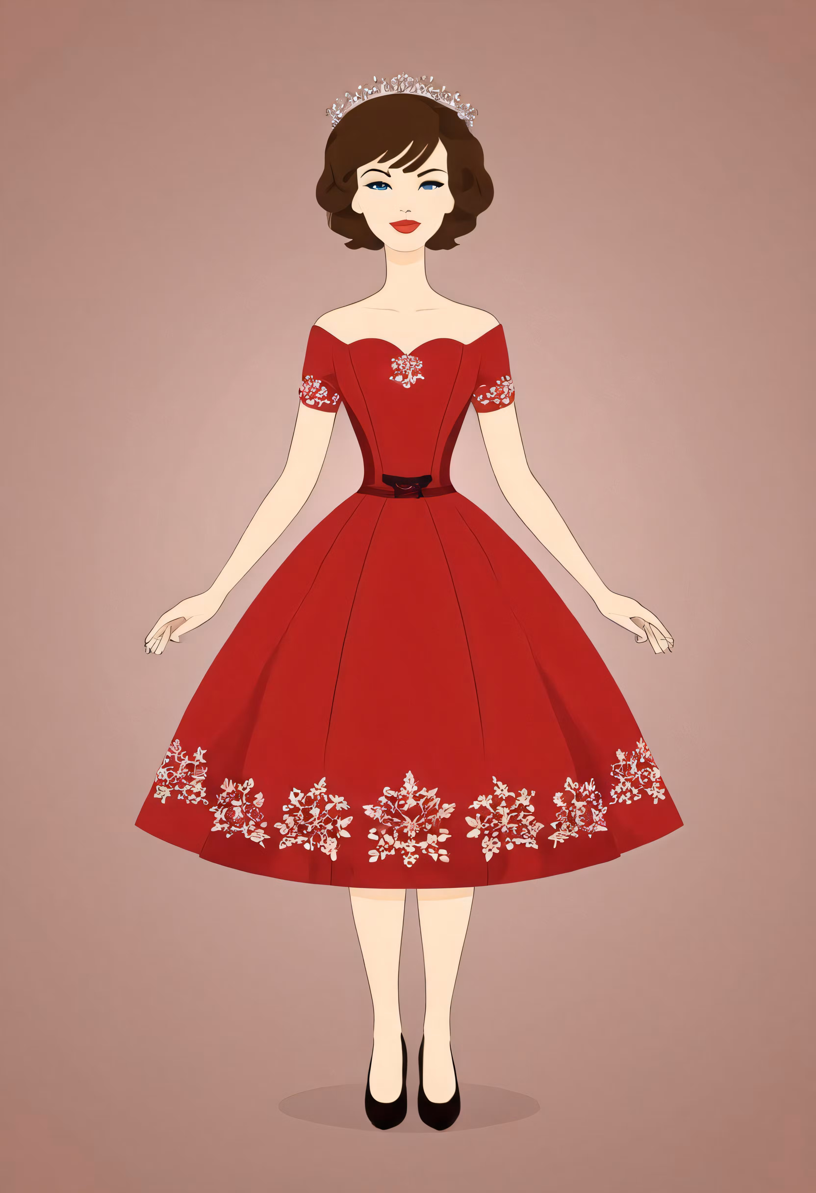 High resolution picture, free to use, an illustration of a girl in a dress with snowflakes