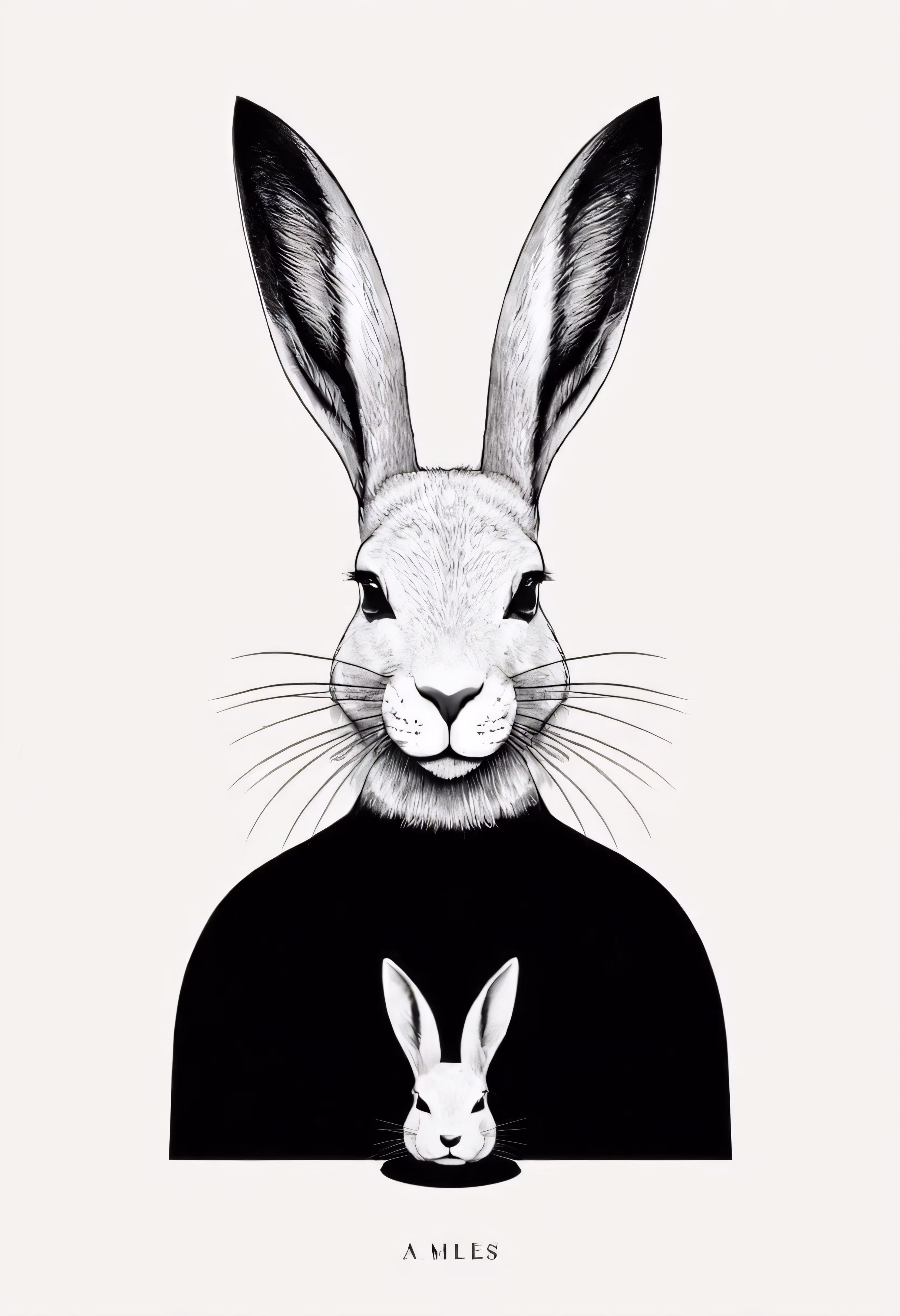 High resolution picture, free to use, an illustration of a rabbit with a man
