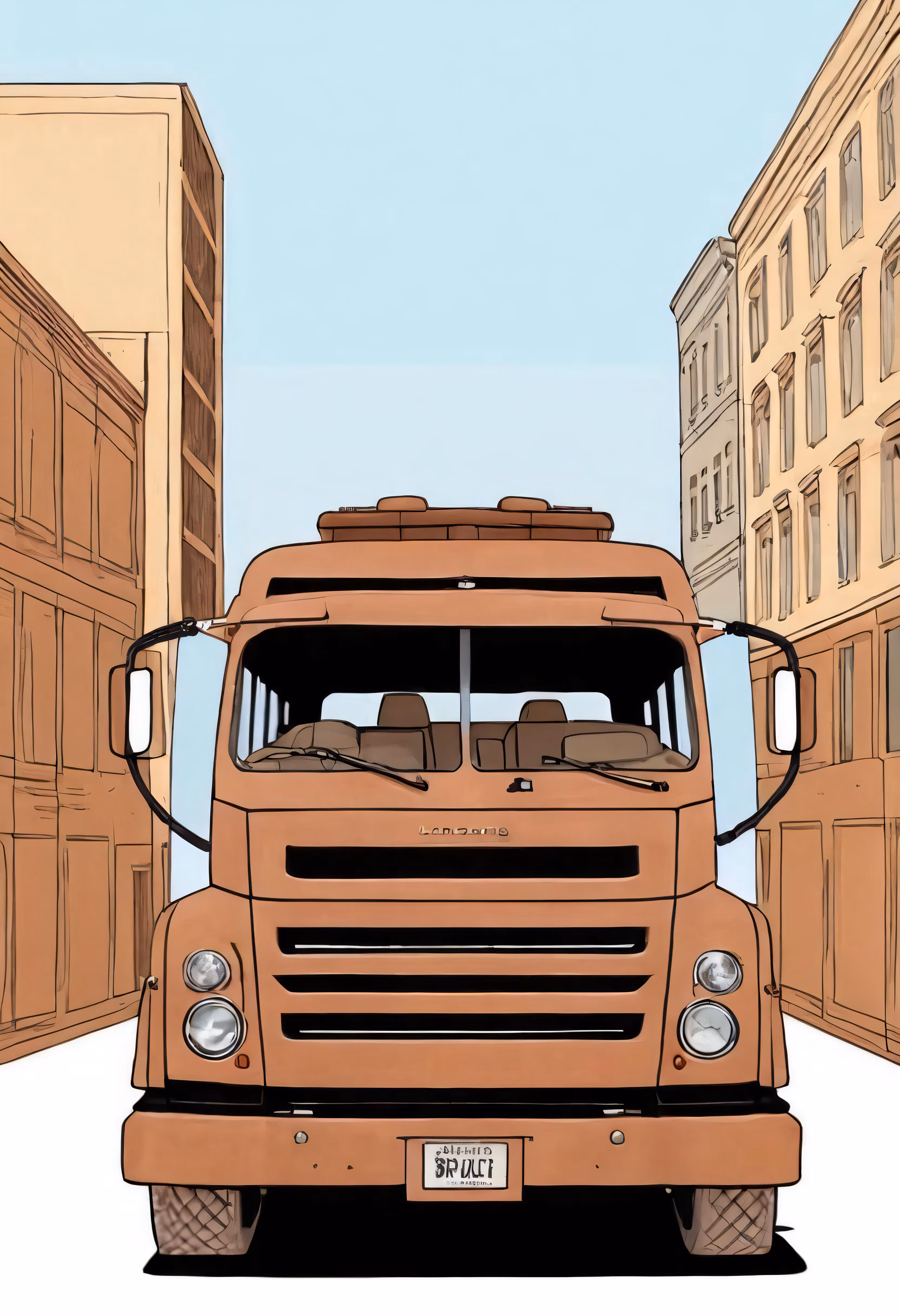 High resolution picture, free to use, an illustration of a truck sitting in the middle of an alley