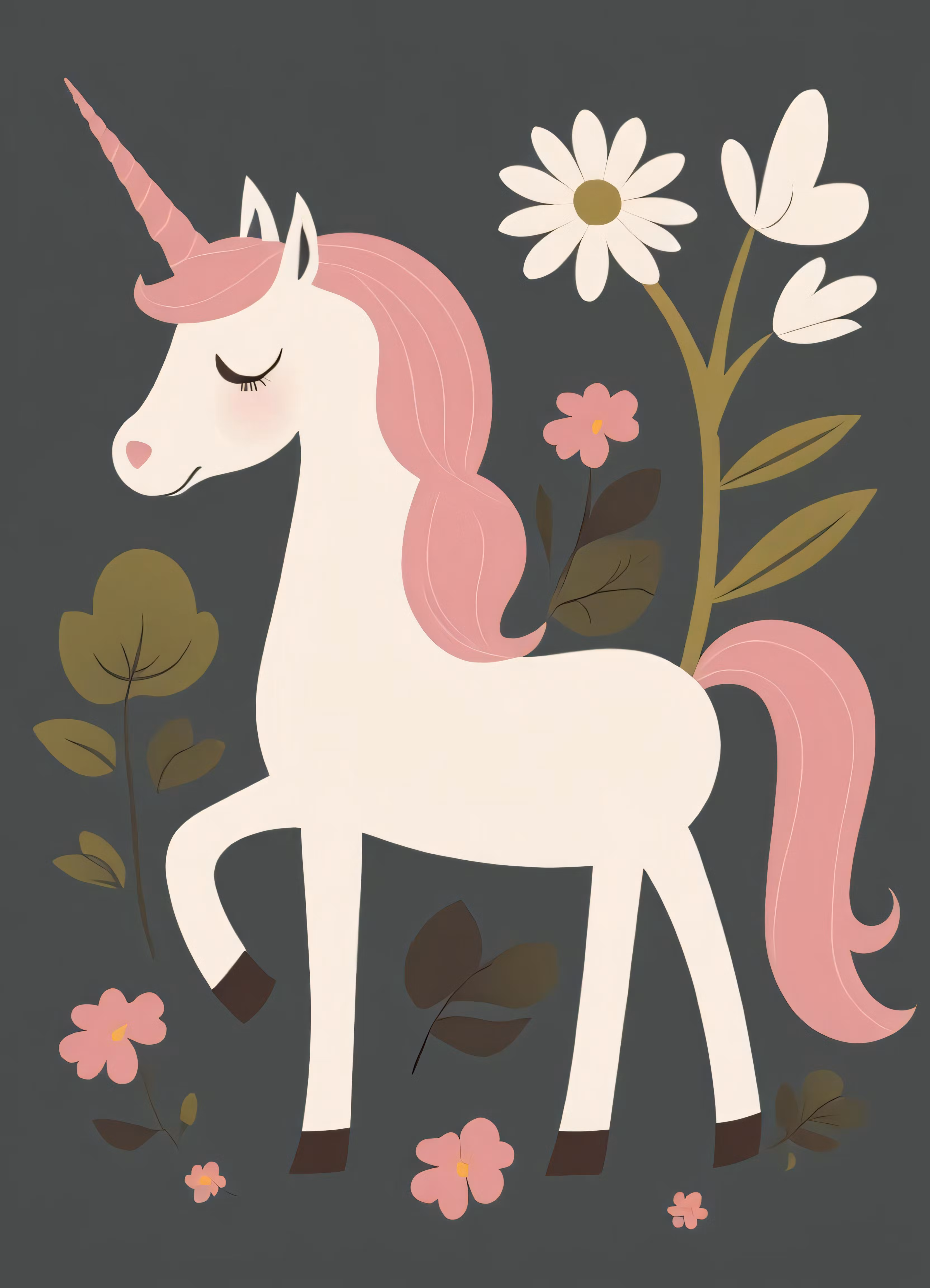 High resolution picture, free to use, an illustration of a unicorn in flowery foliage