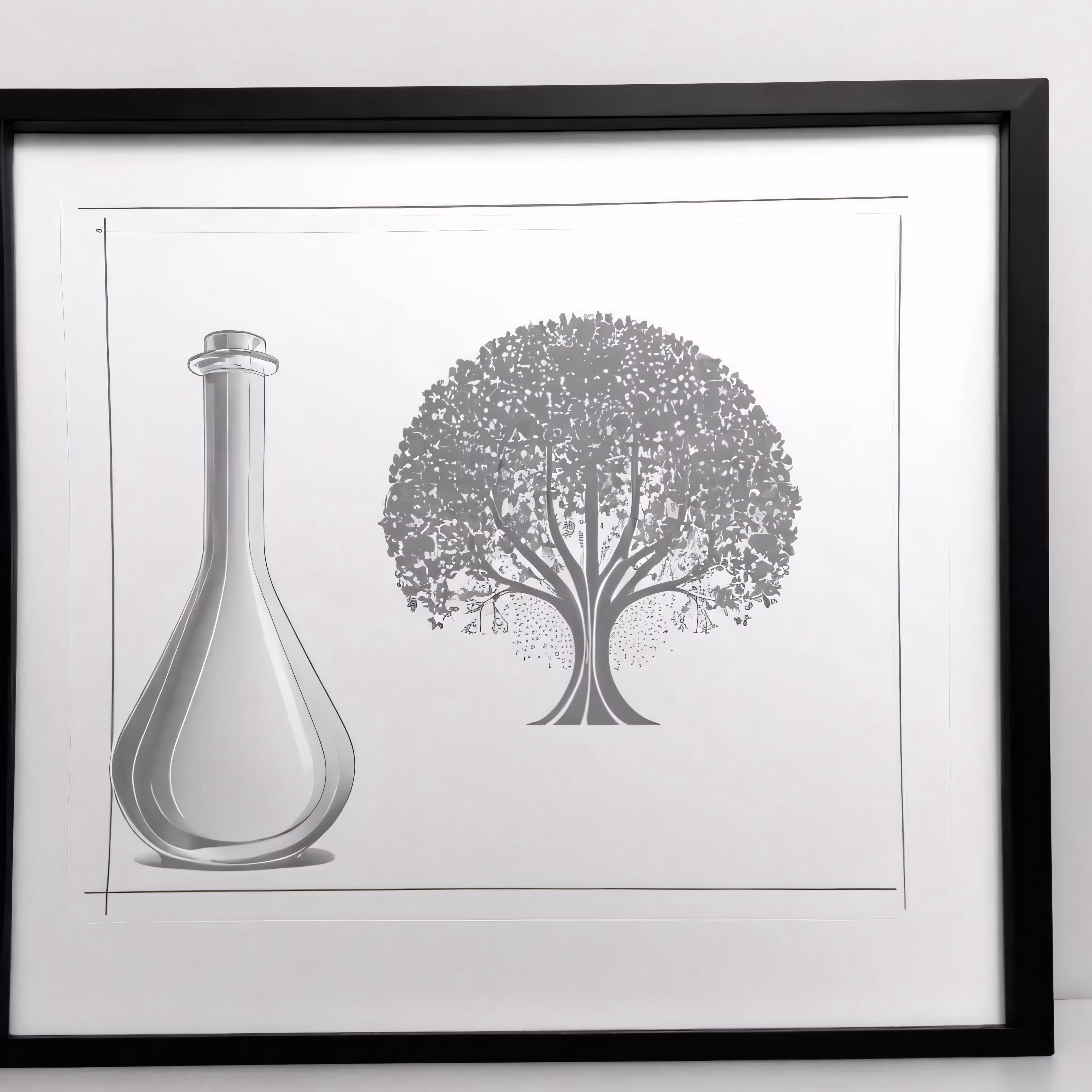 High resolution picture, free to use, an illustration of a vase with a tree design on the front