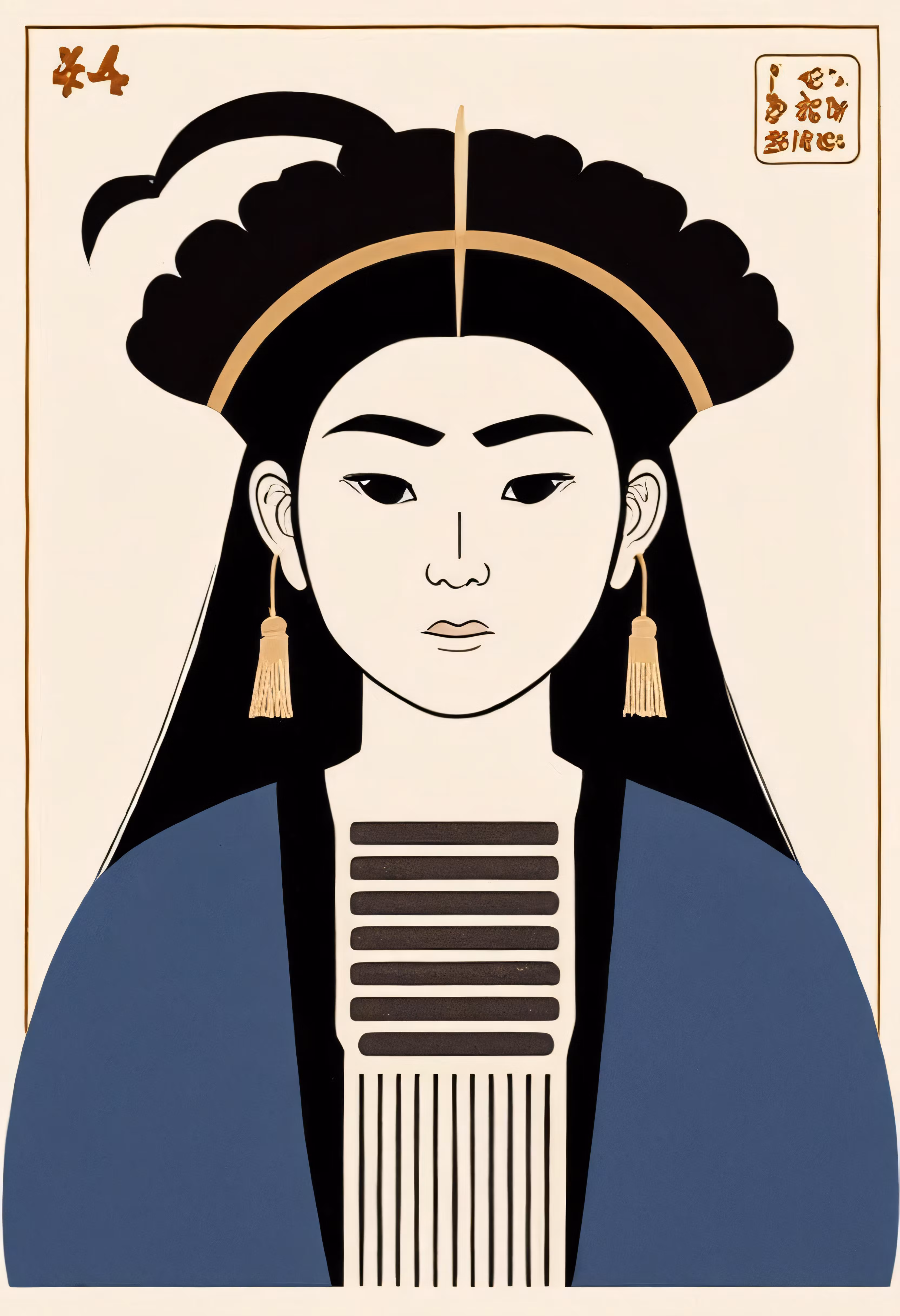 High resolution picture, free to use, an illustration of an asian woman wearing a white shirt and blue dress with black hair