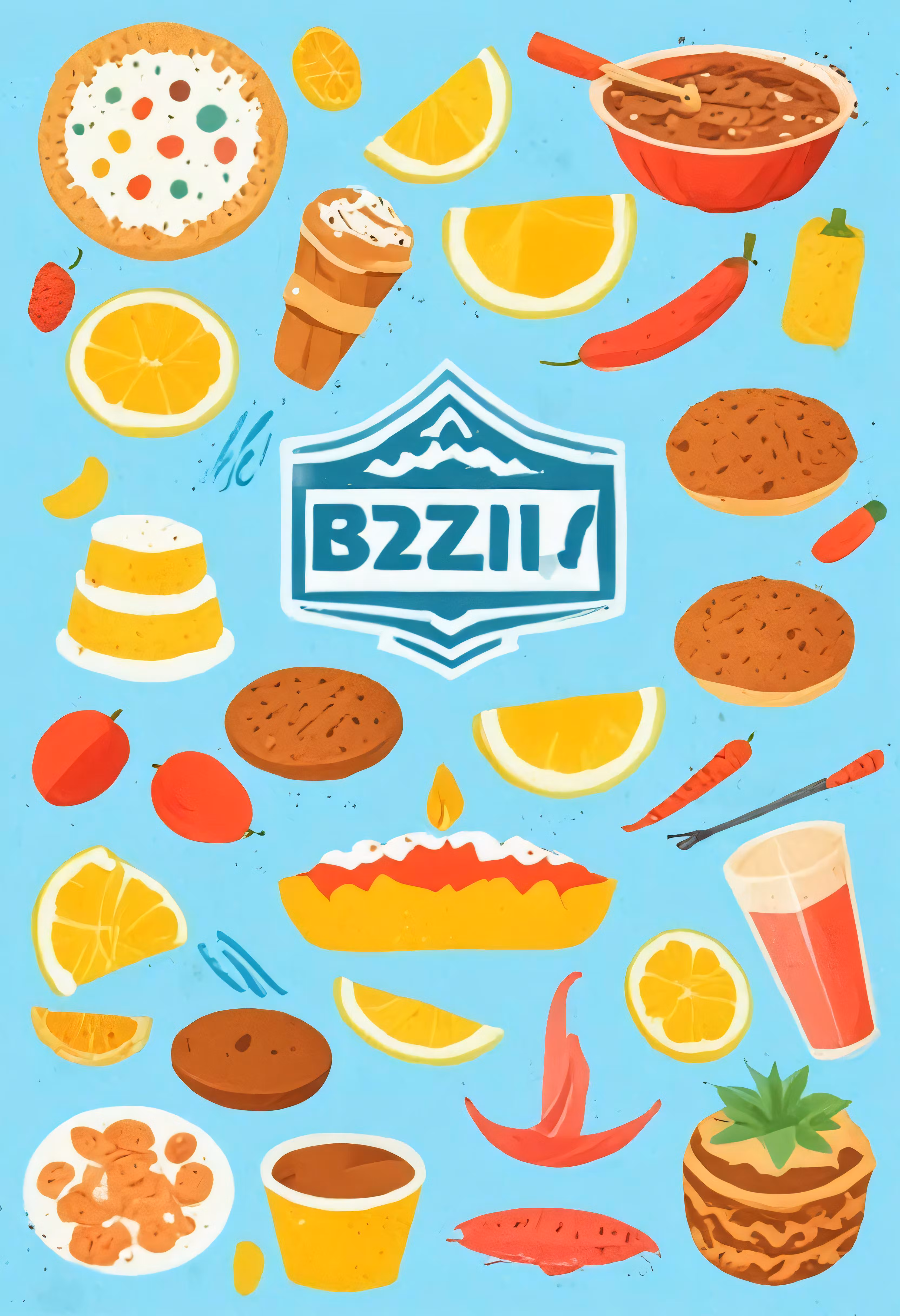 High resolution picture, free to use, an illustration of the bbzil logo surrounded by food