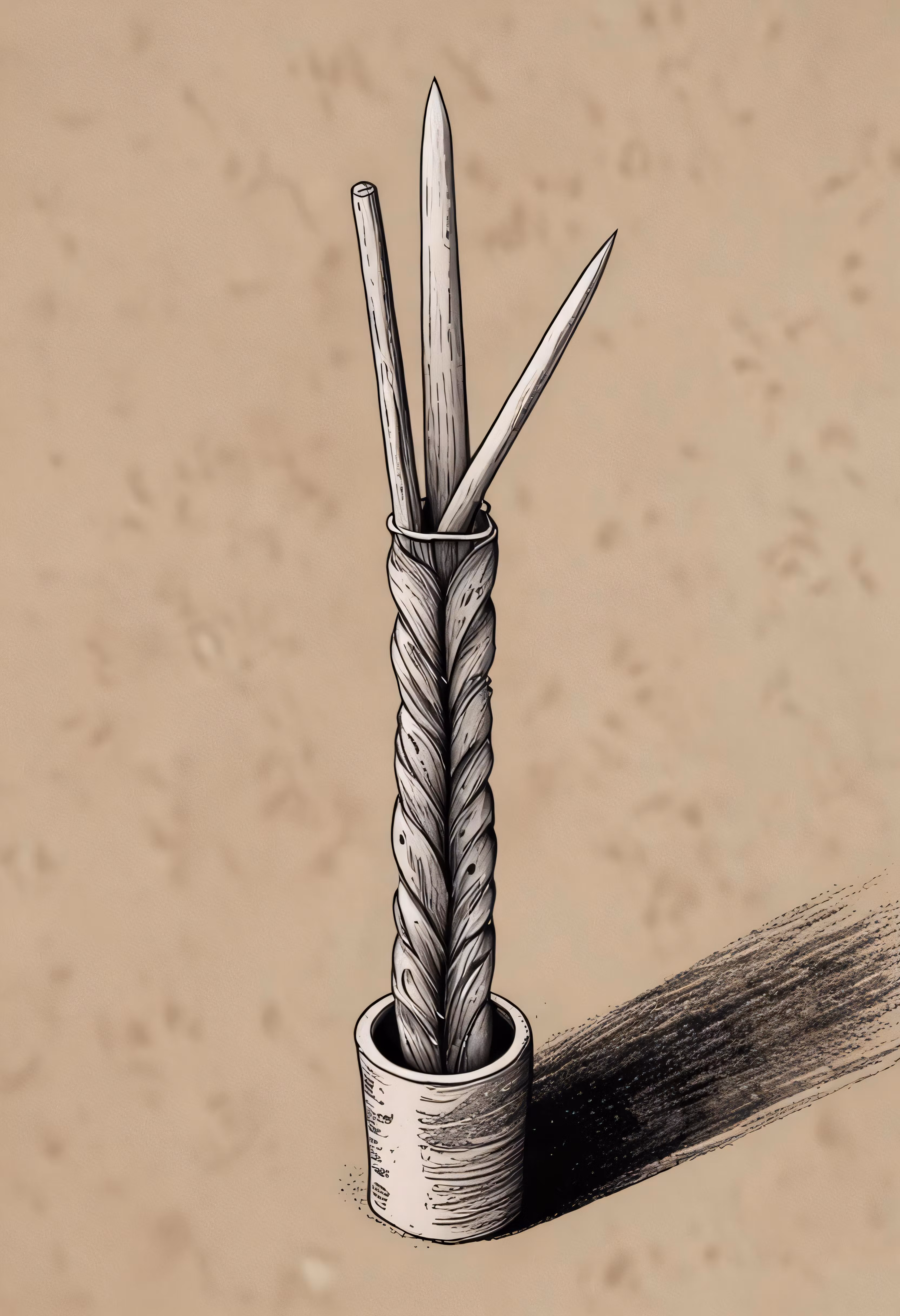 High resolution picture, free to use, an illustration of two sharp knives stuck into a pot