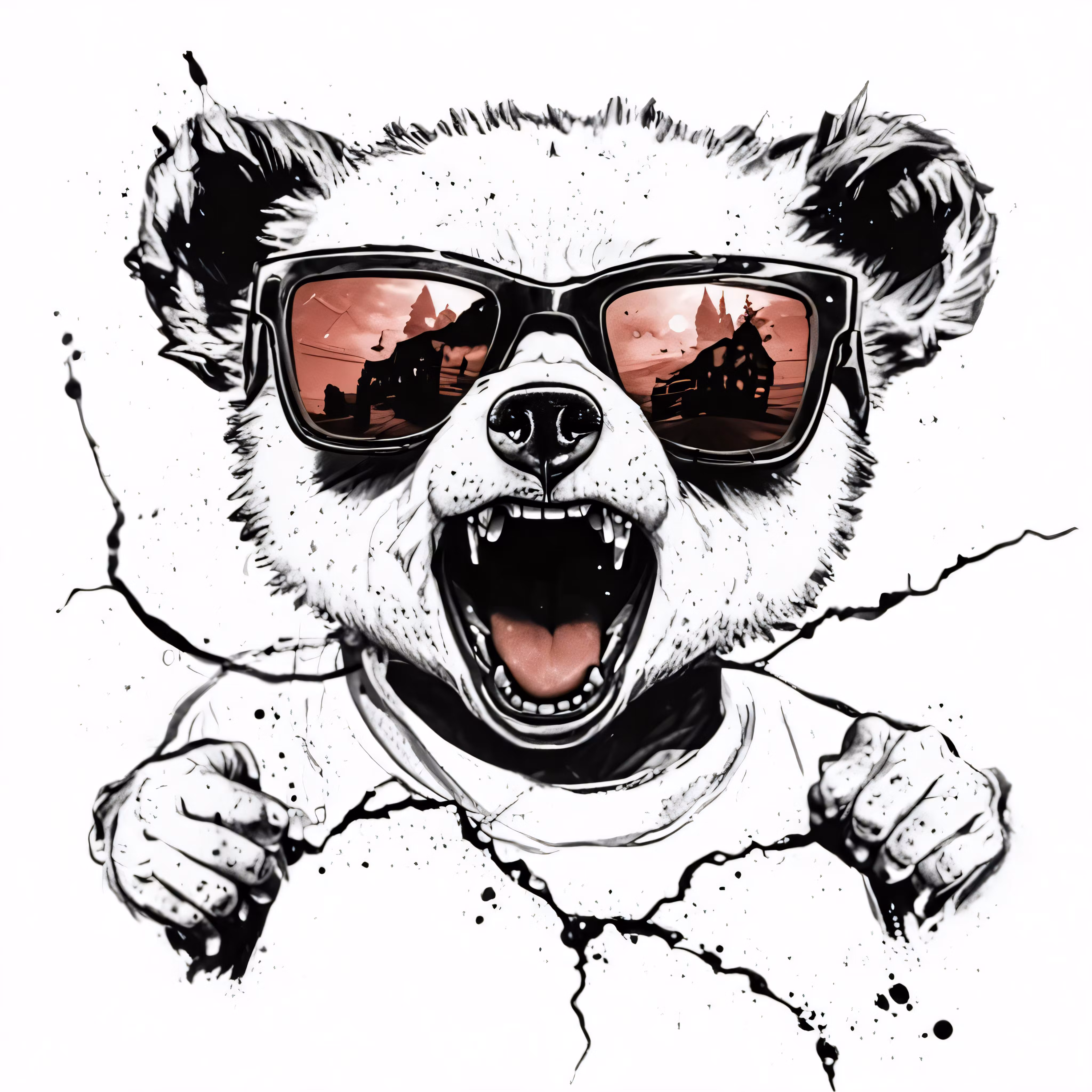 High resolution picture, free to use, an illustration with a large bear wearing sunglasses