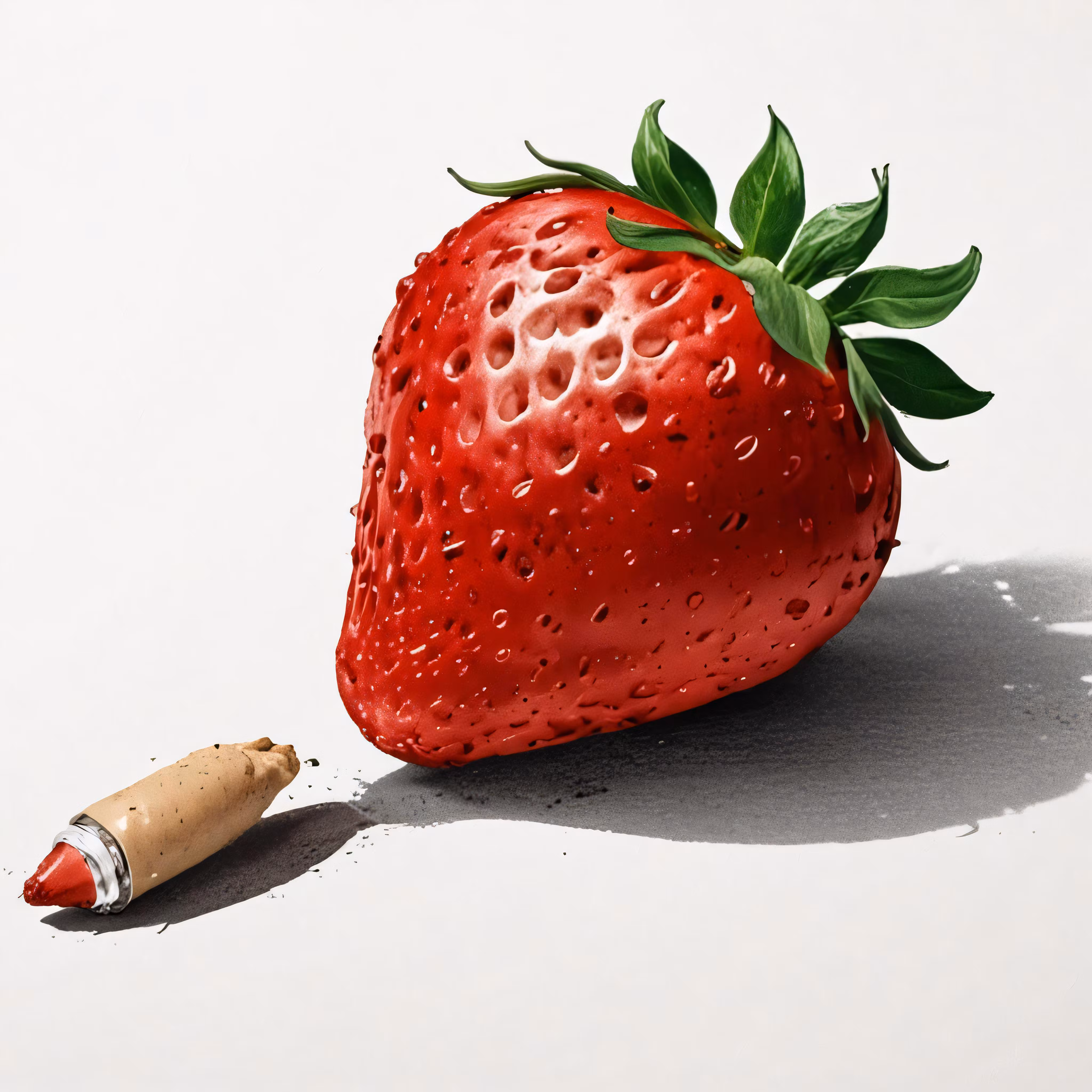 High resolution picture, free to use, an image of a single strawberry and the rest half full