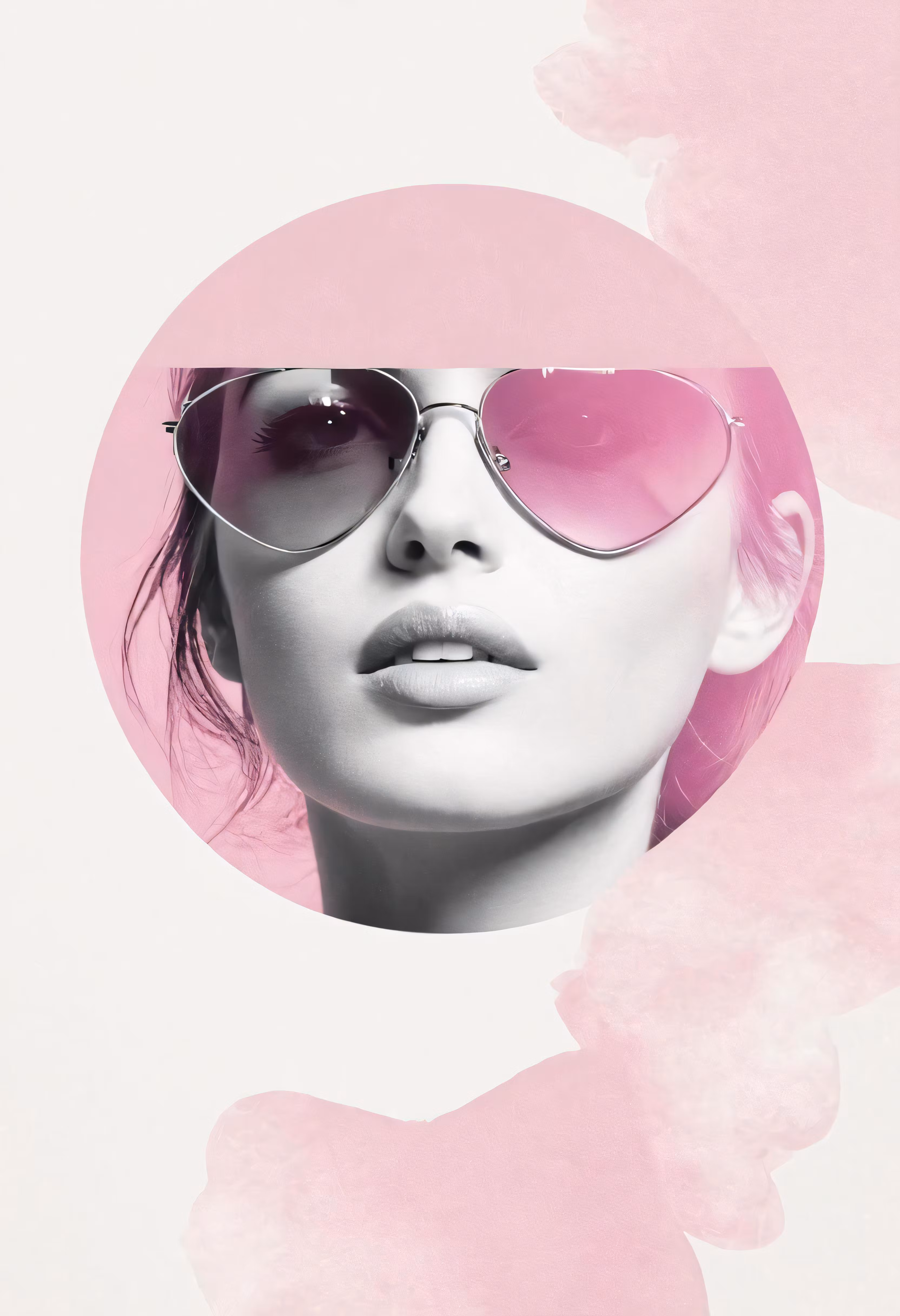 High resolution picture, free to use, an image of a woman wearing sunglasses with a pink circle around her