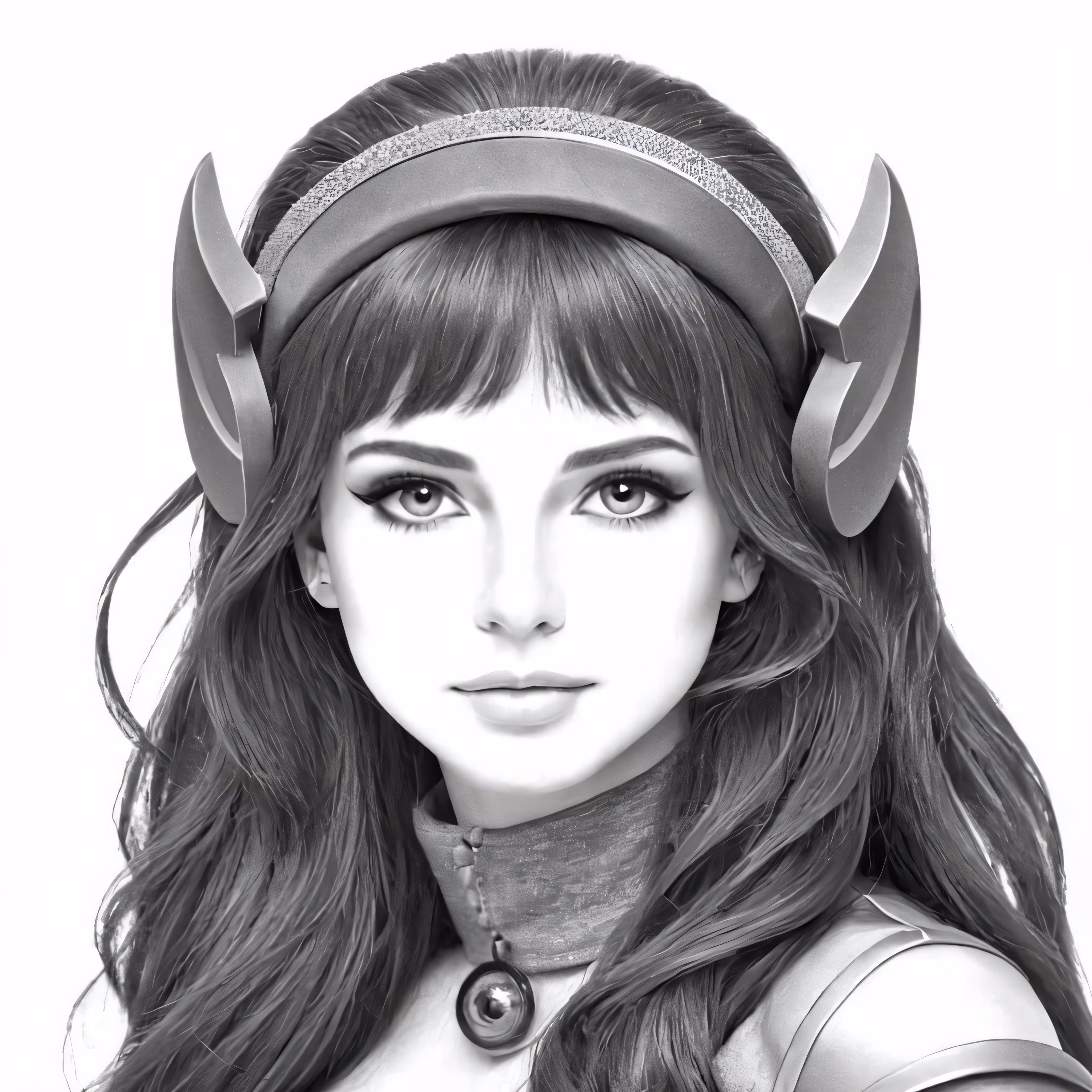 High resolution picture, free to use, an image of a woman with horns and long hair