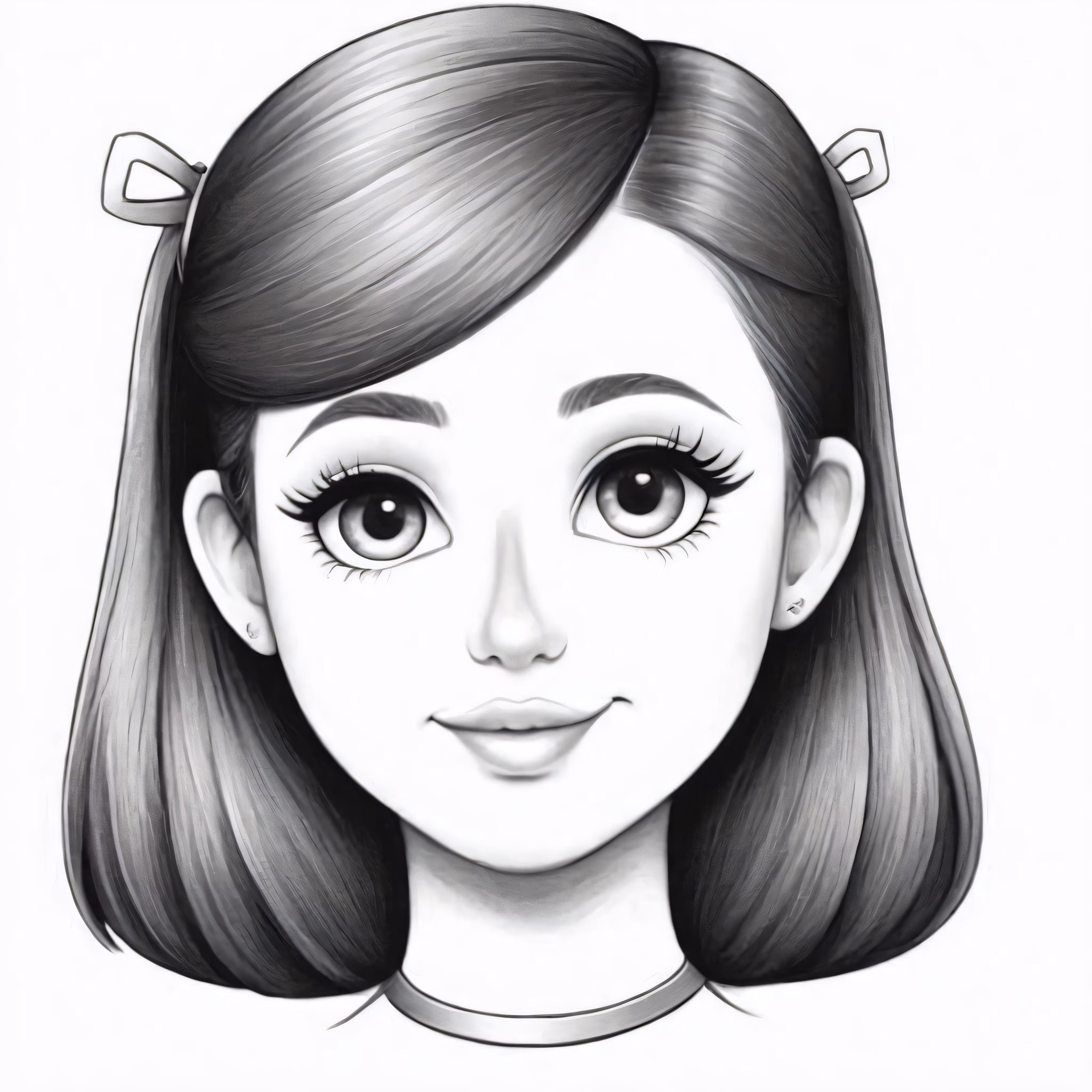 High resolution picture, free to use, an image of the cartoon face of girl with dark hair and pink cheeks