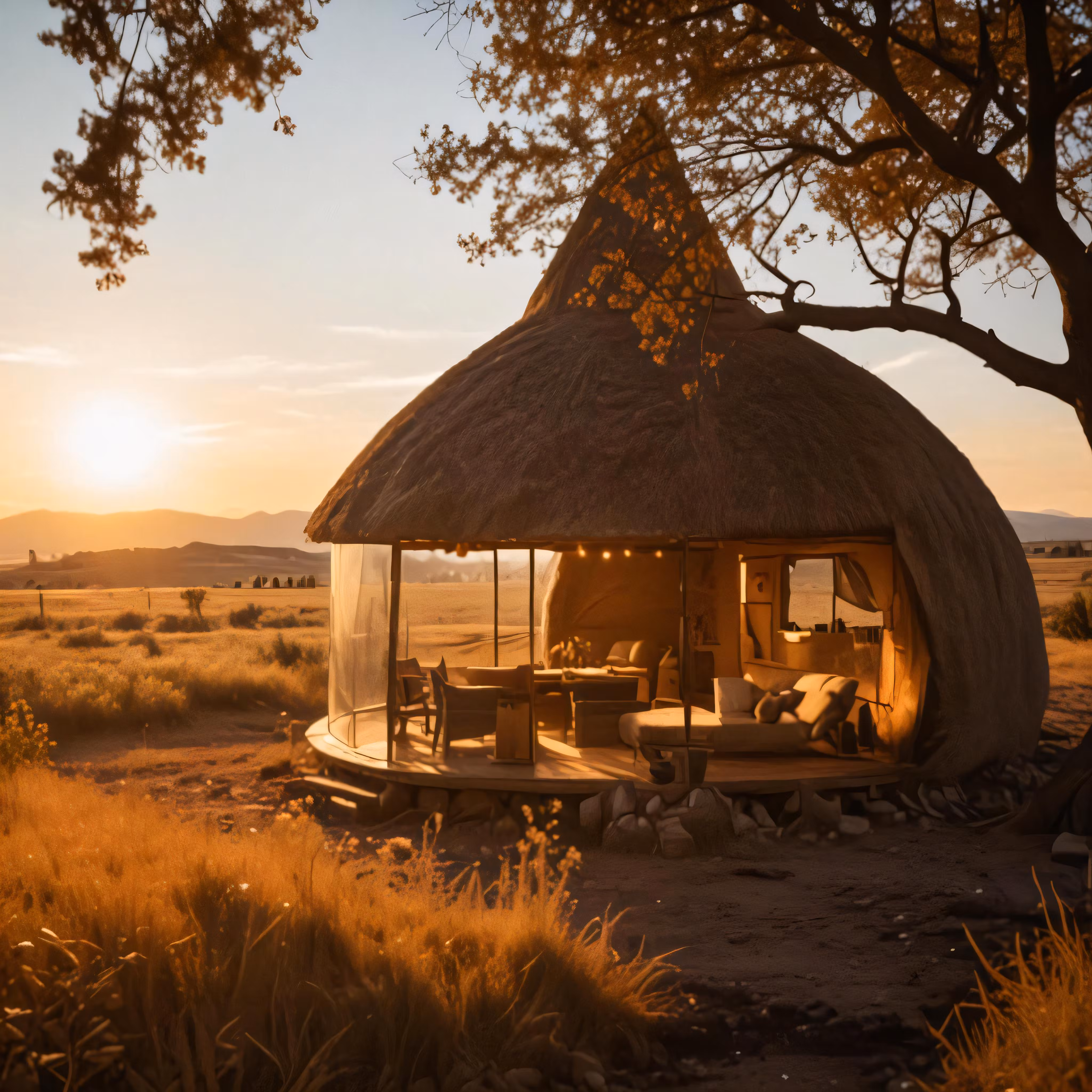 High resolution picture, free to use, an inside of a tent that is near a tree