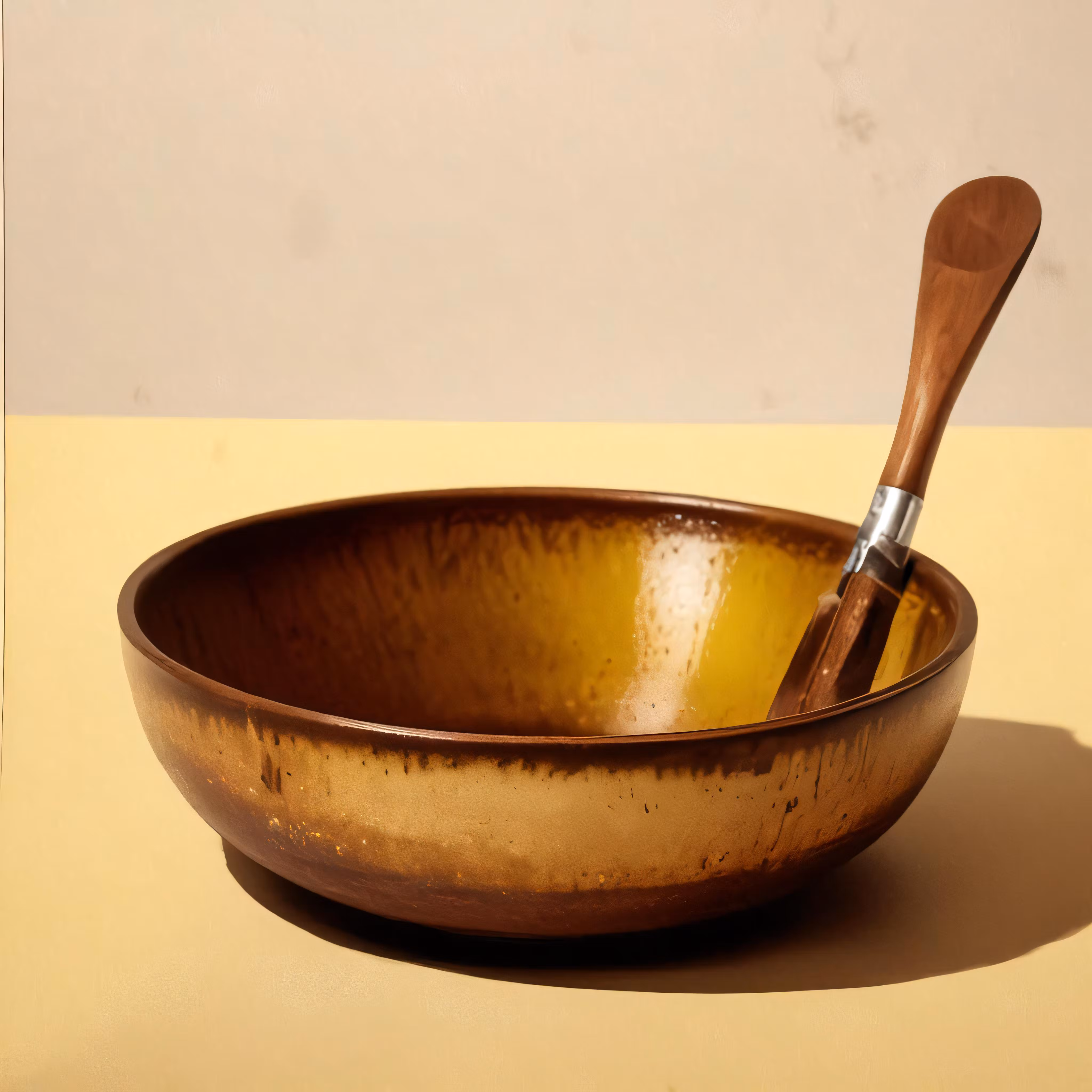 High resolution picture, free to use, an old   fashioned metal bowl and wooden spoon