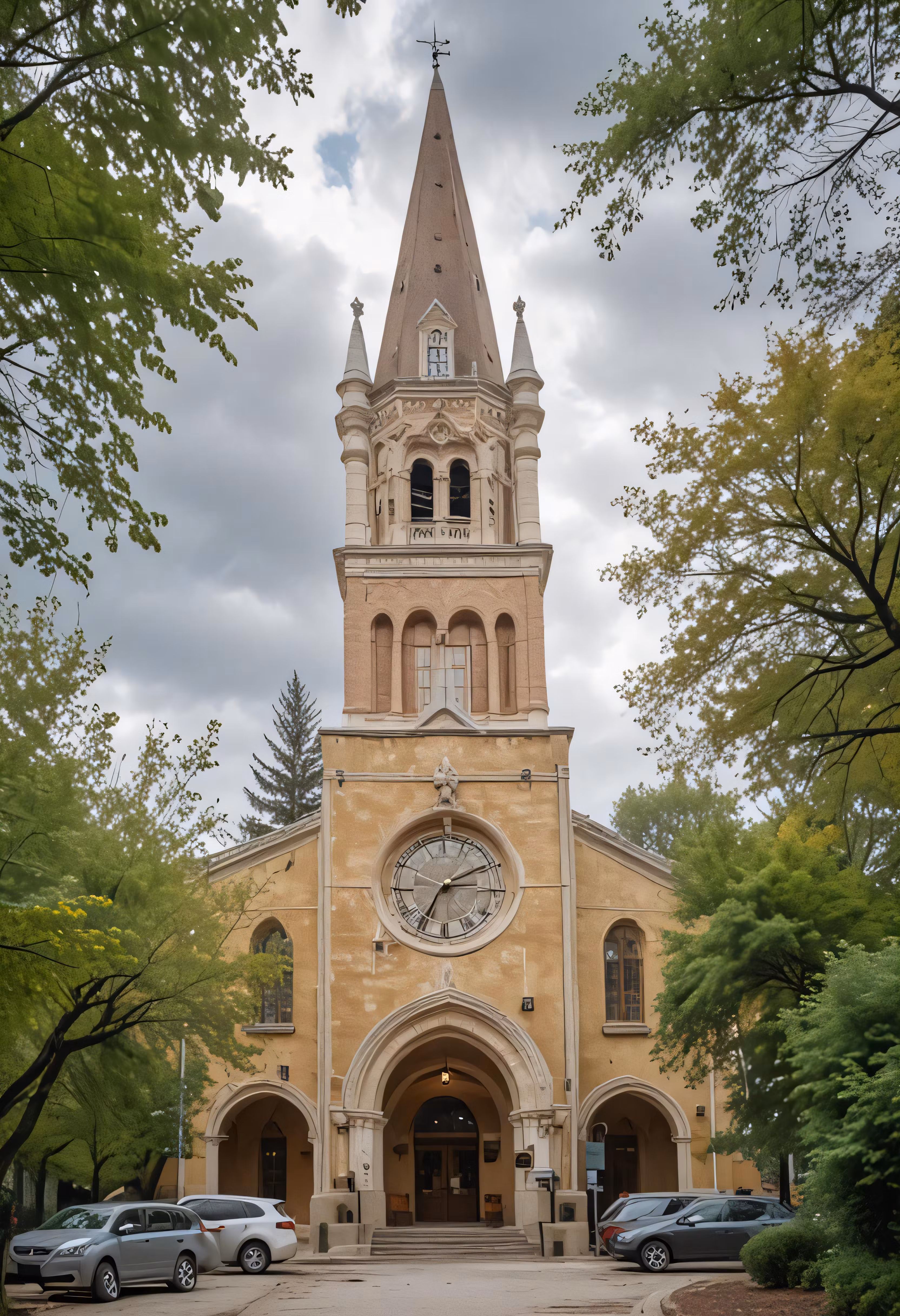 High resolution picture, free to use, an old church has a large clock tower
