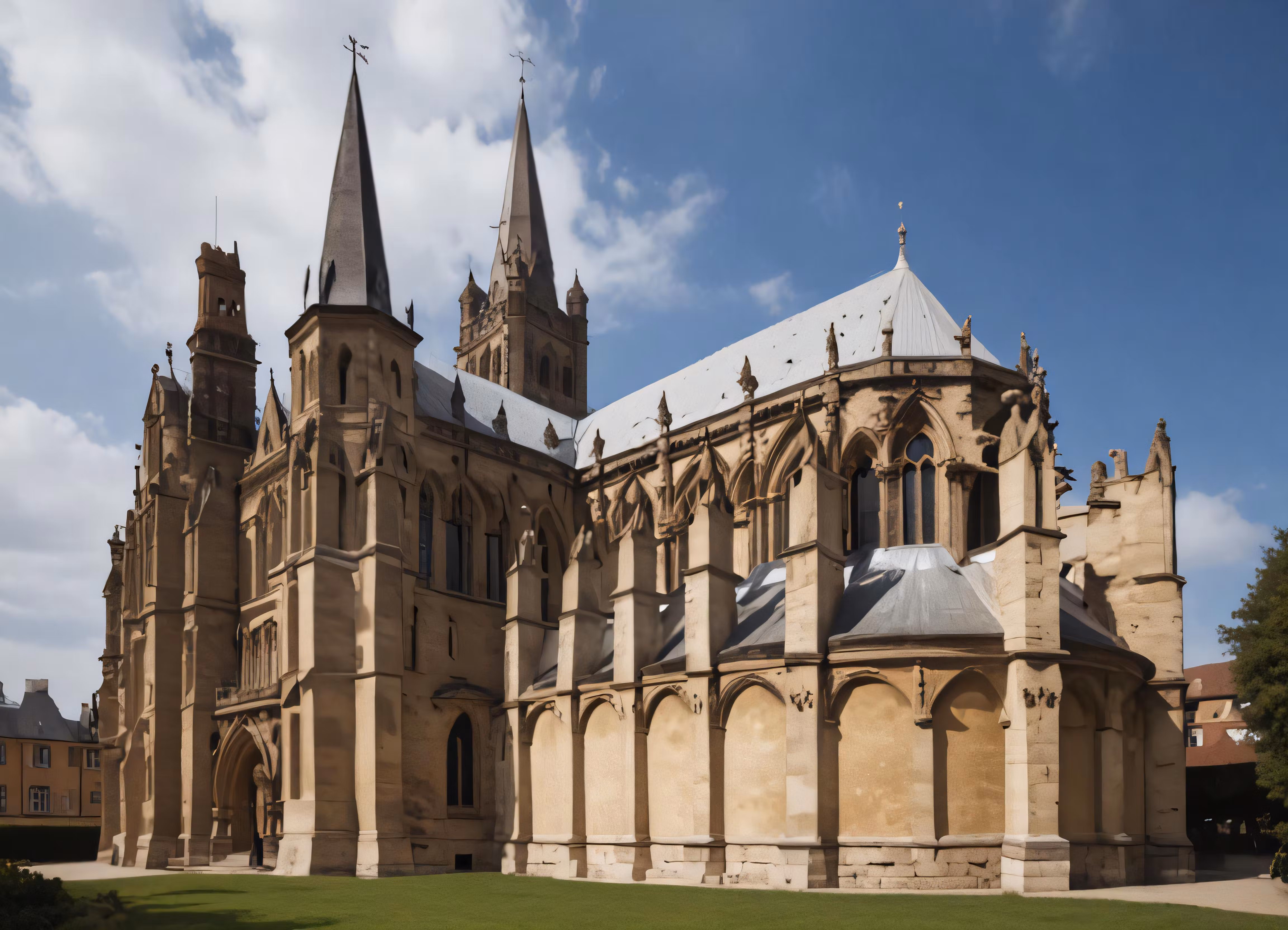 High resolution picture, free to use, an old church with the front and side windows on a sunny day