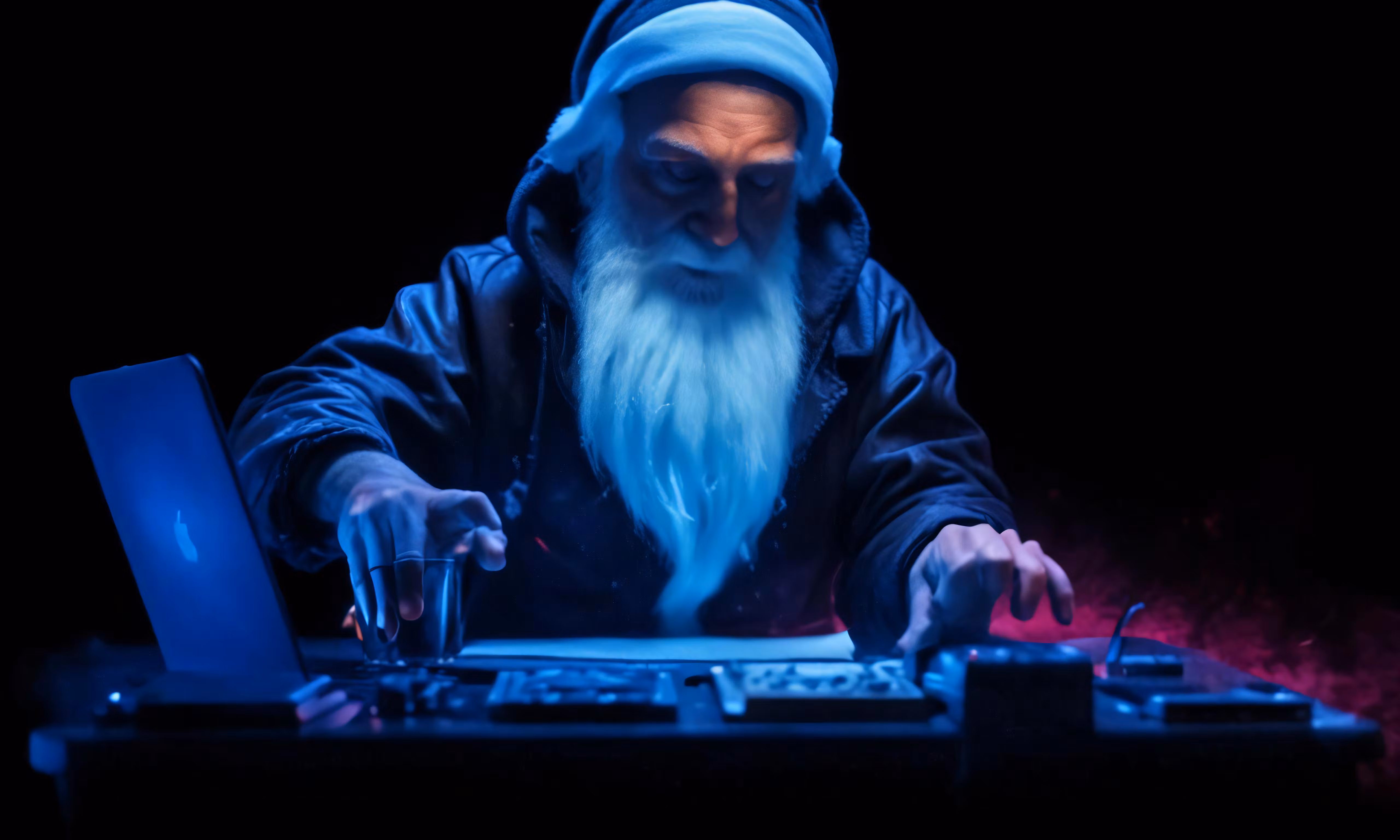 High resolution picture, free to use, an old man using a laptop while dj mixing at a concert