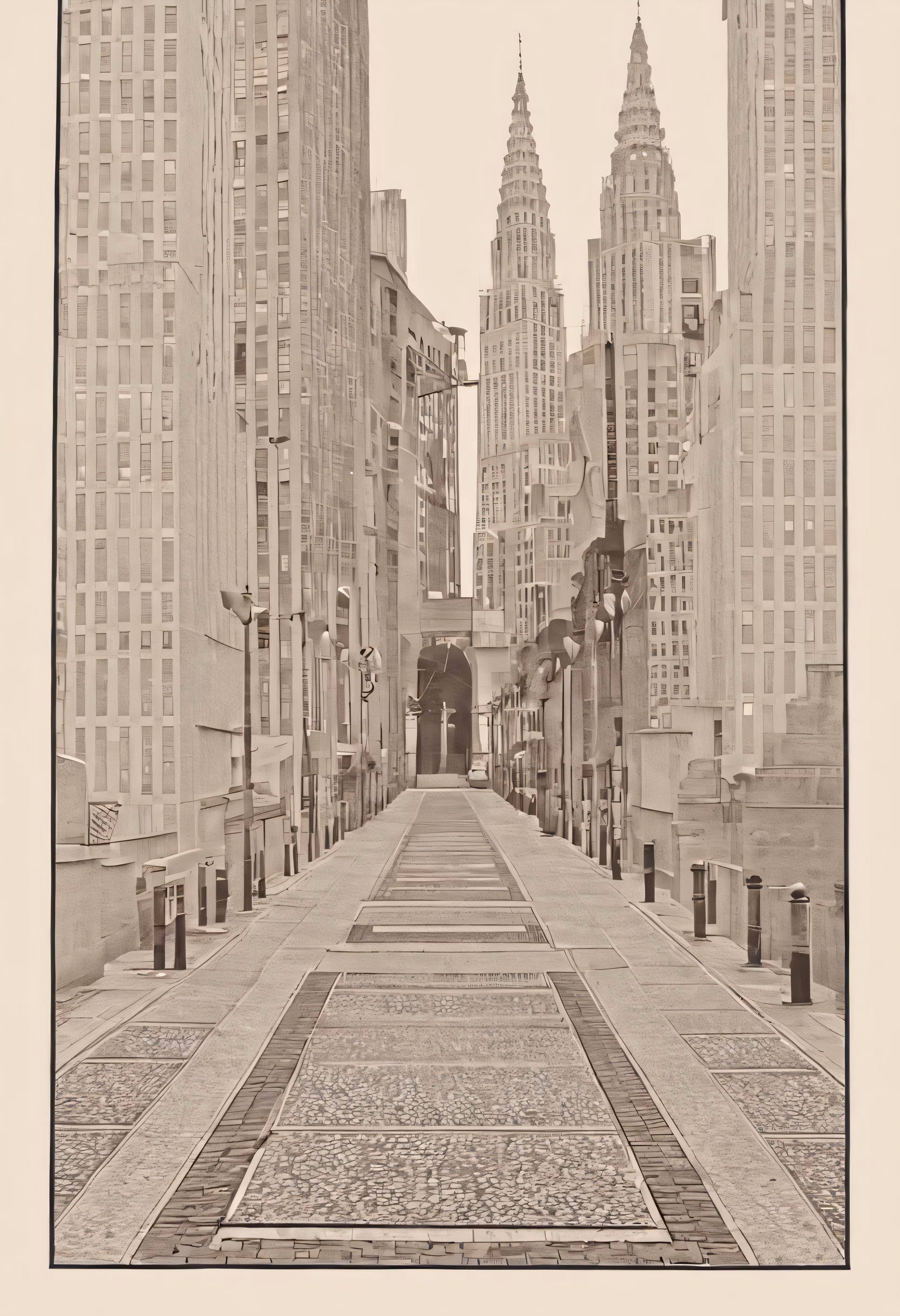 High resolution picture, free to use, an old photo of a sidewalk between buildings