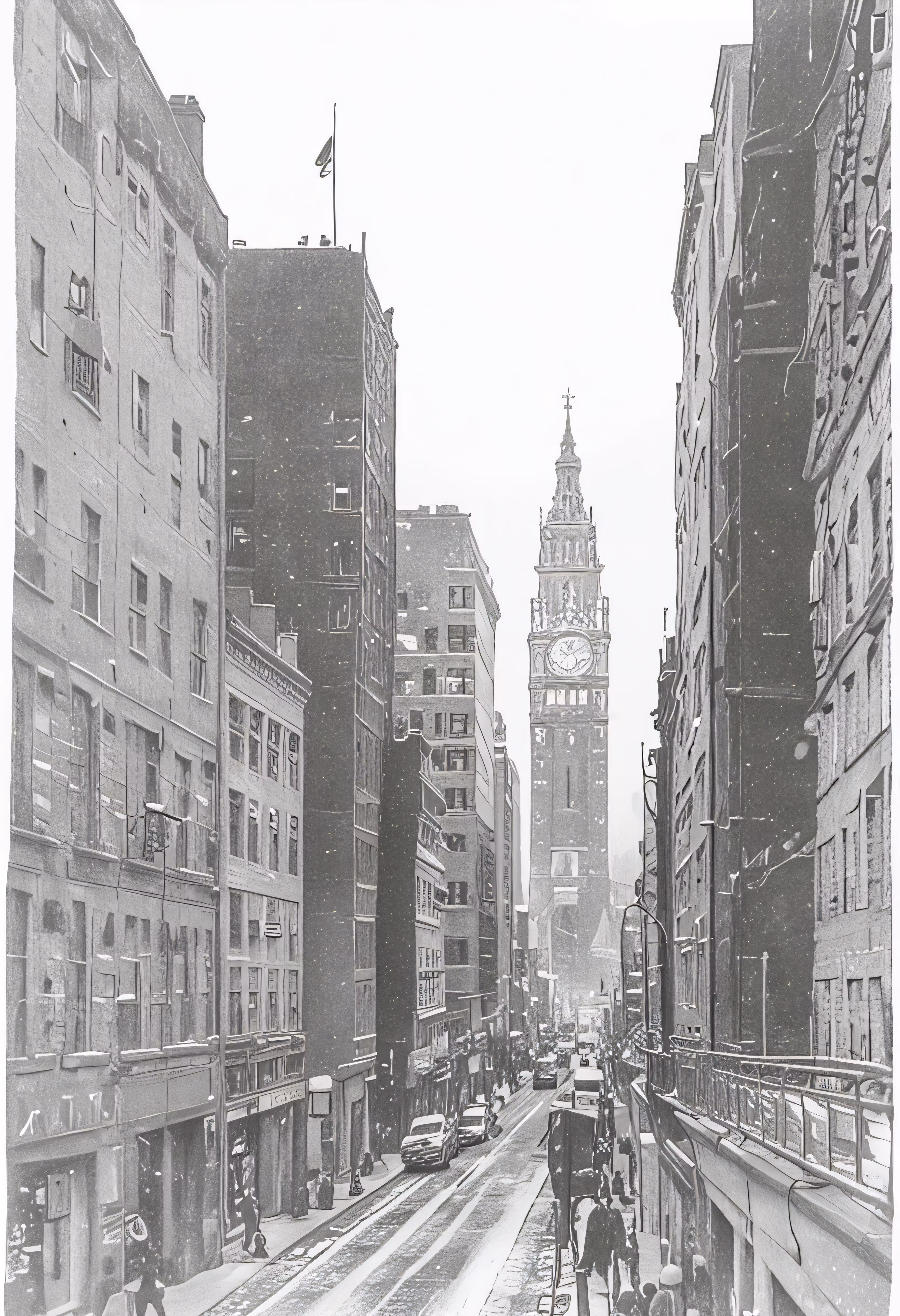 High resolution picture, free to use, an old picture shows a wintery street with people