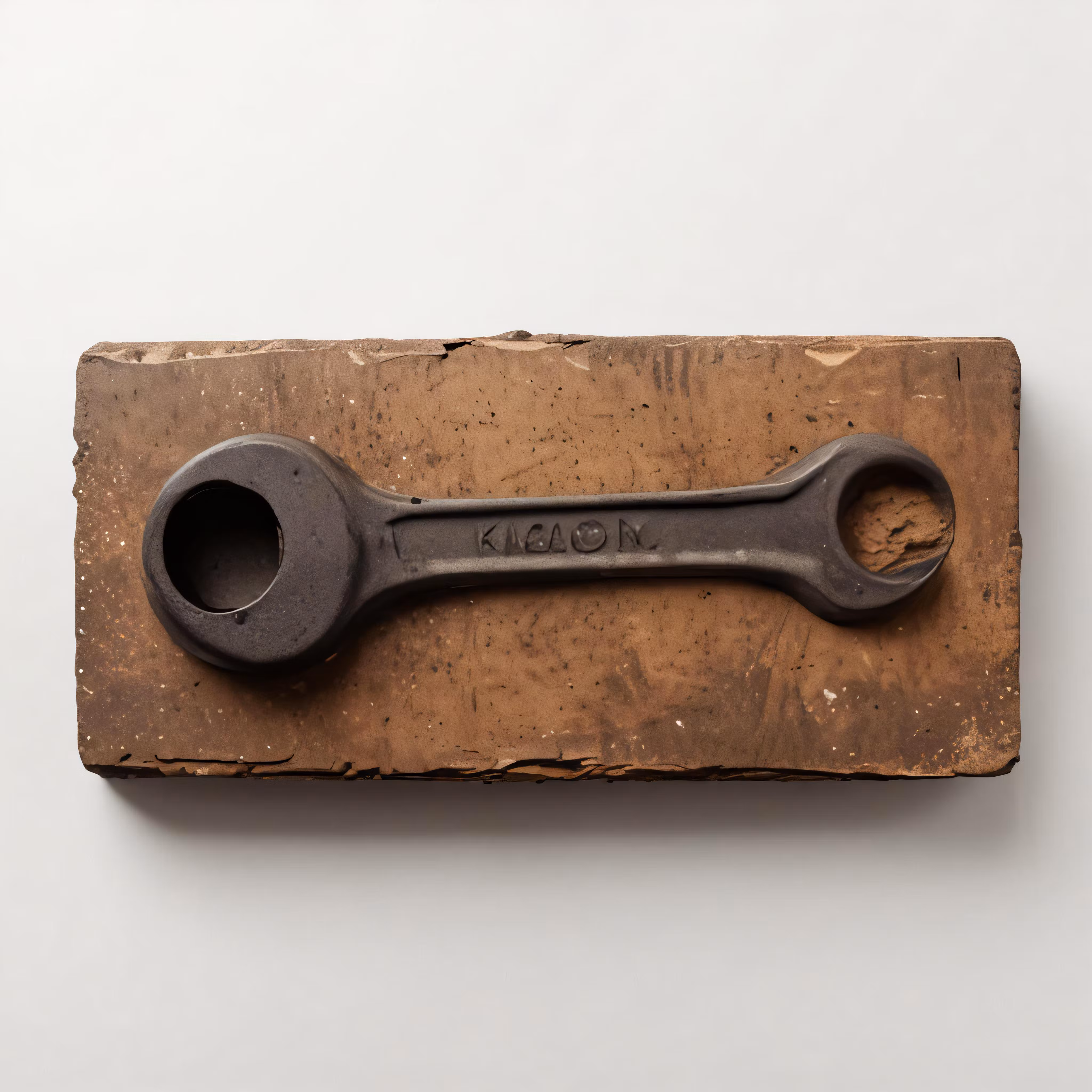 High resolution picture, free to use, an old spanner hanging from a wooden stand