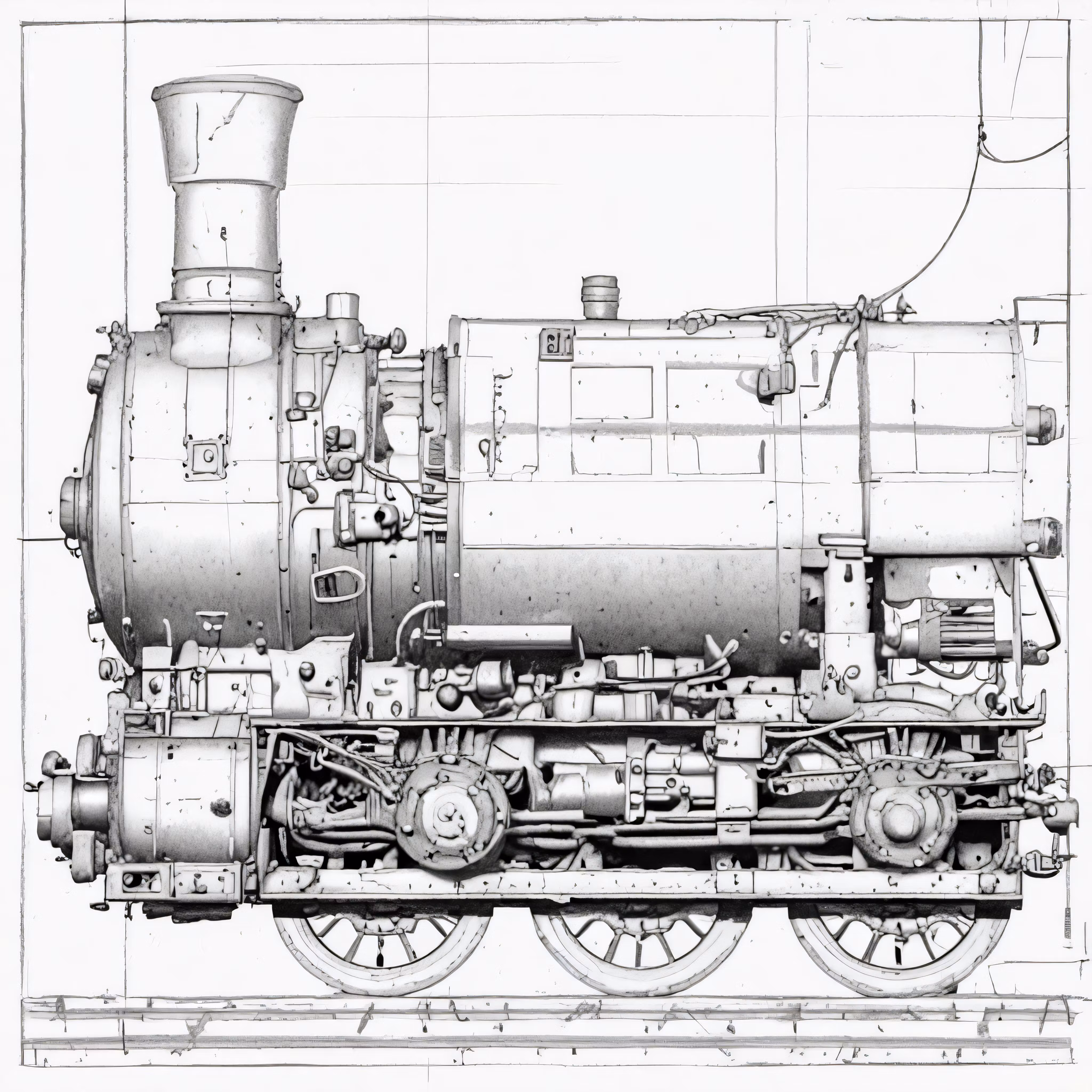 High resolution picture, free to use, an old steam engine is shown with wire on it