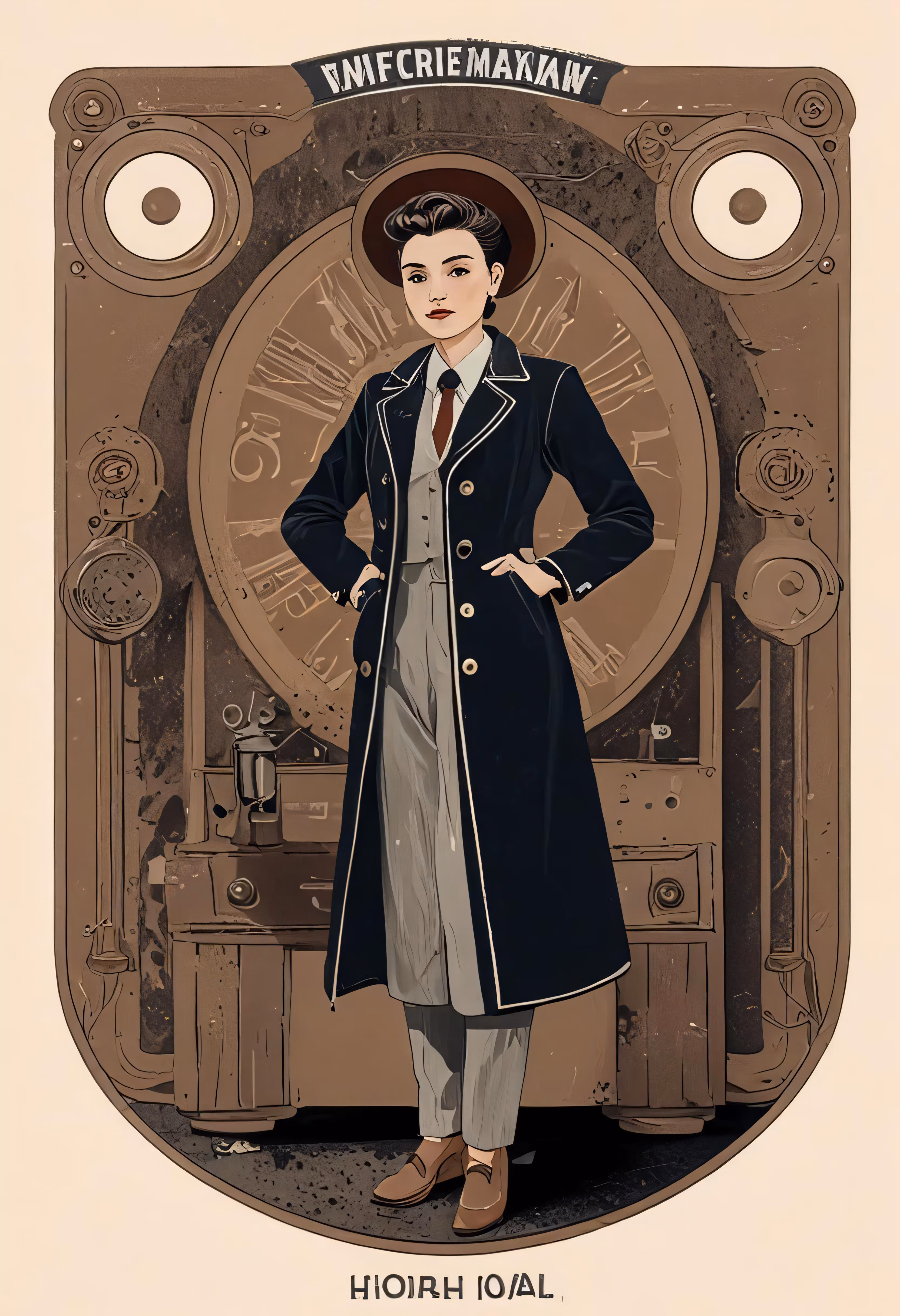 High resolution picture, free to use, an old style woman wearing a long coat with long sleeves