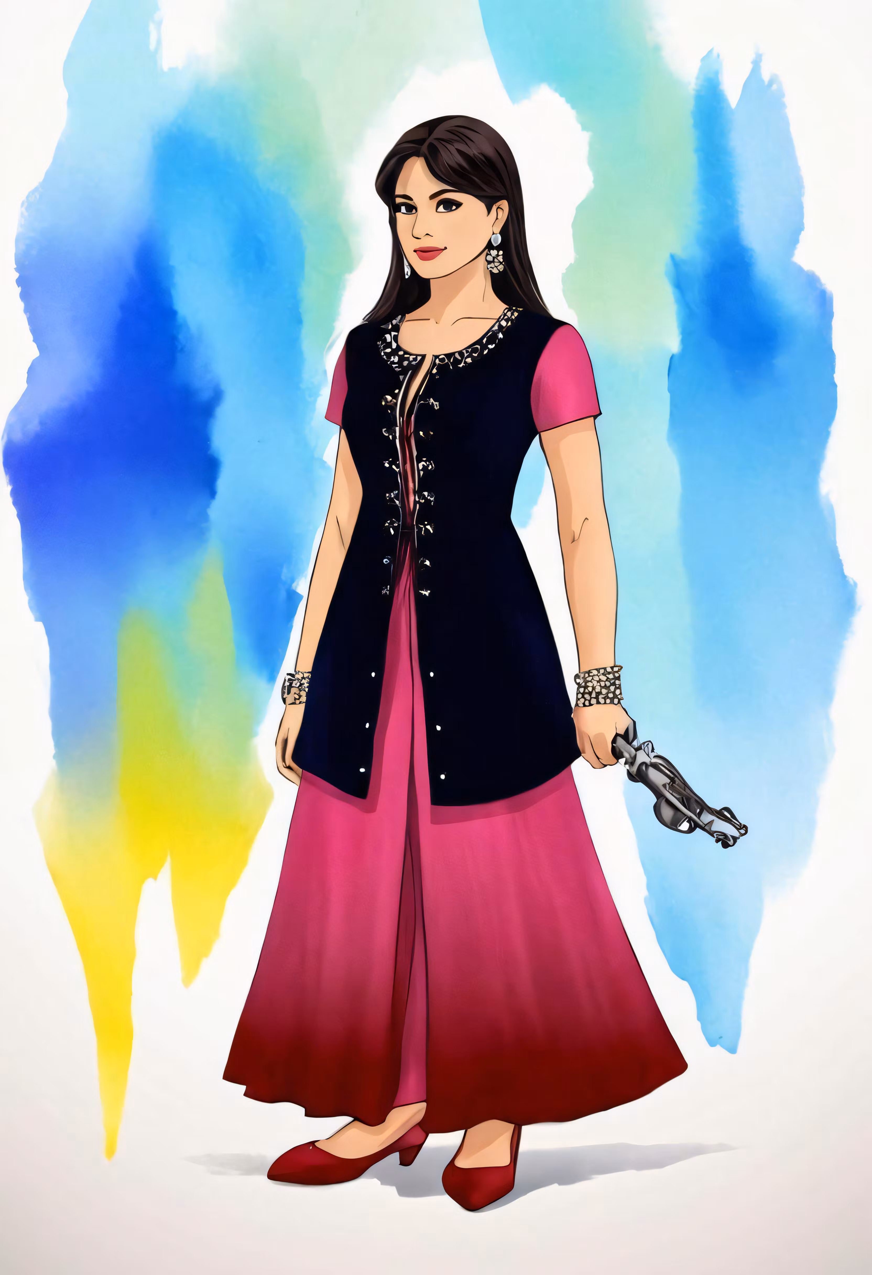 High resolution picture, free to use, an older drawing of a woman wearing a long dress