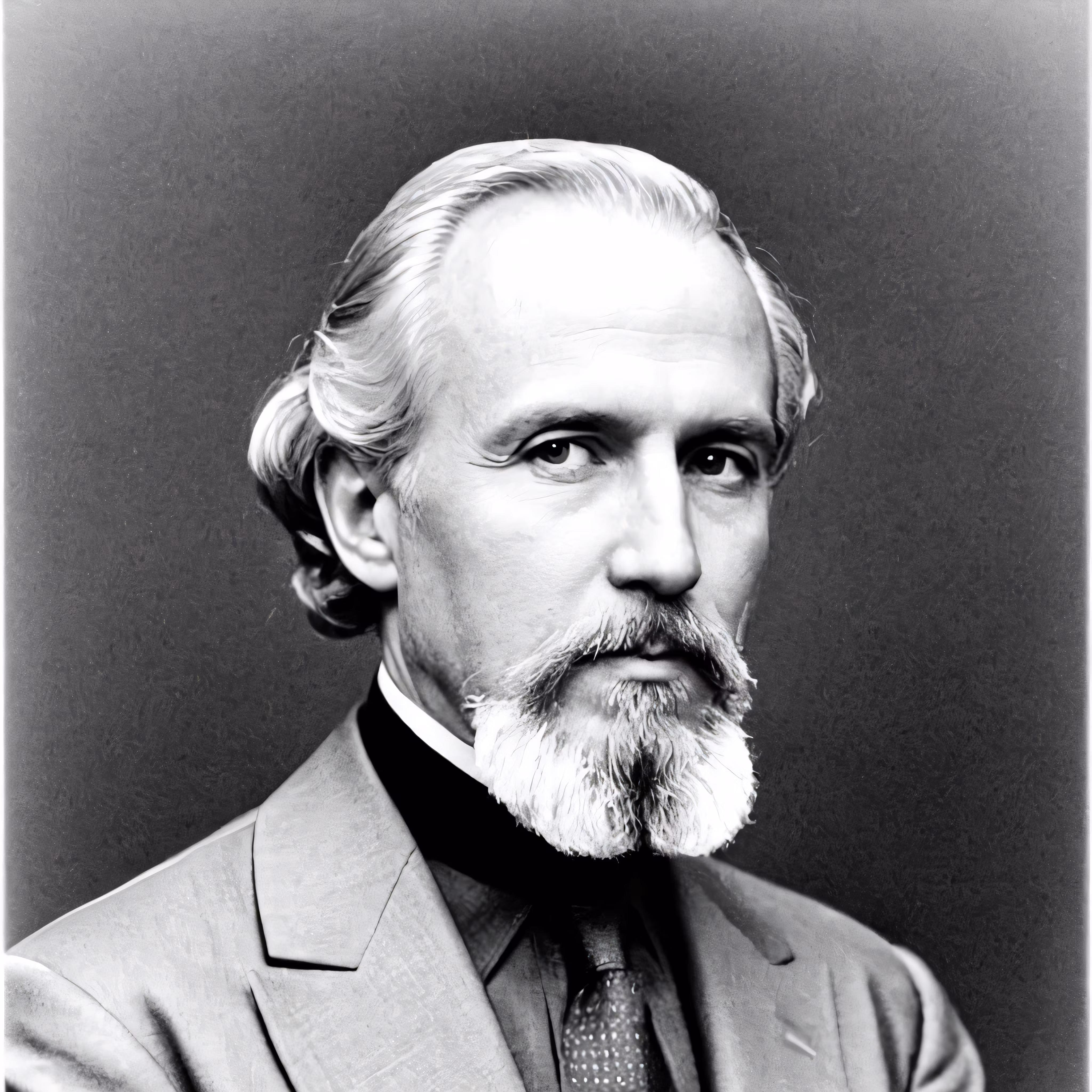 High resolution picture, free to use, an older man wearing a gray suit and a white beard