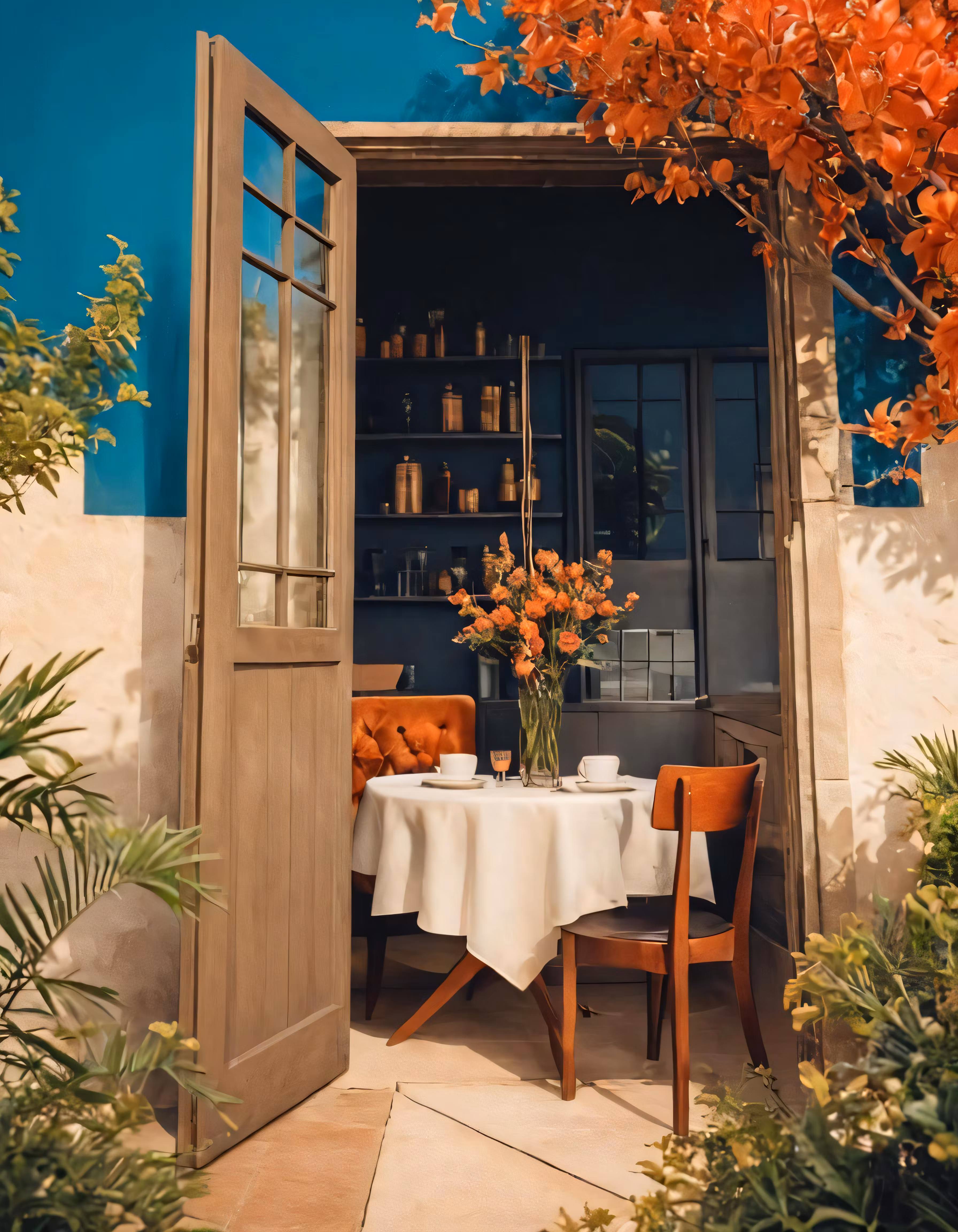 High resolution picture, free to use, an open door leads to a dining room
