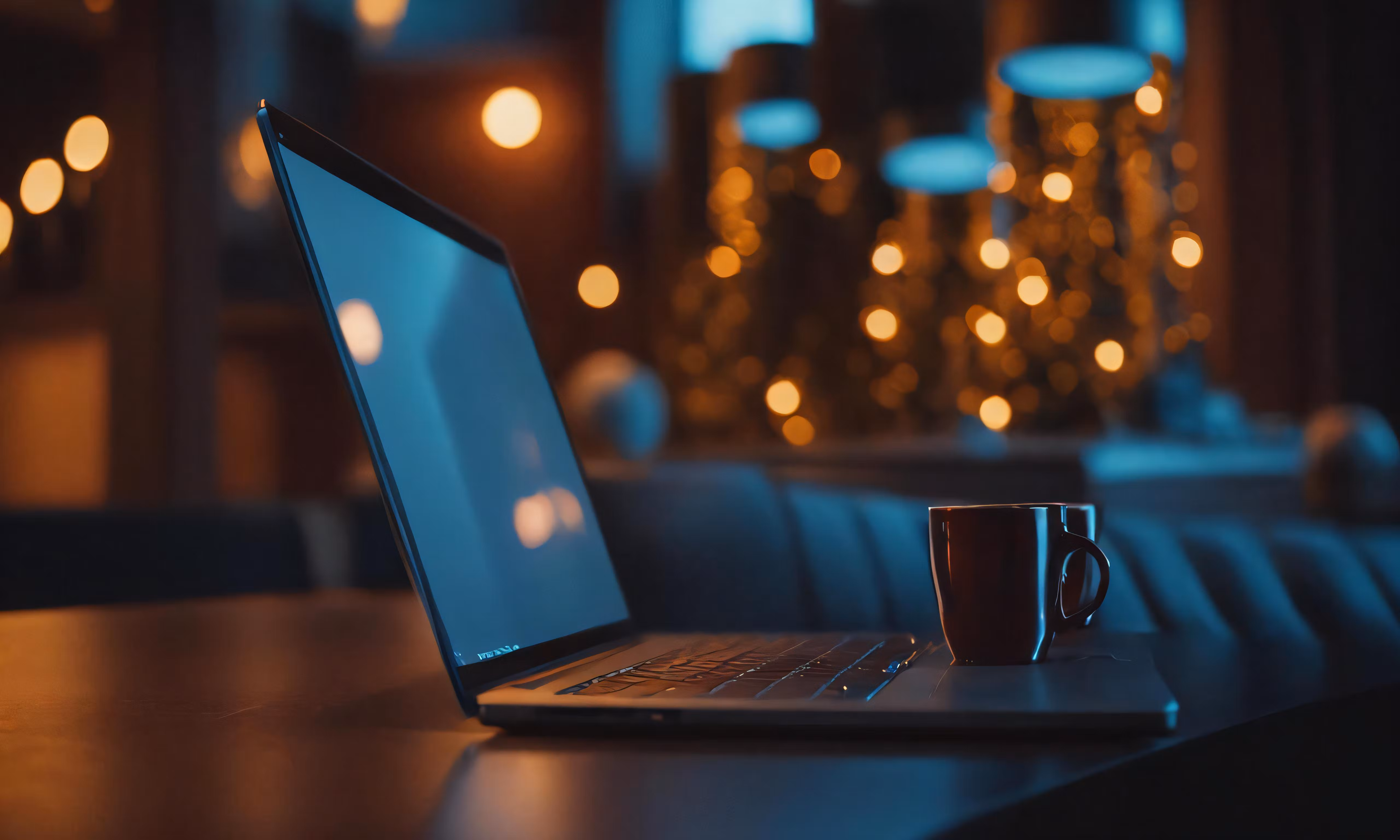 High resolution picture, free to use, an open laptop computer sitting on top of a wooden table