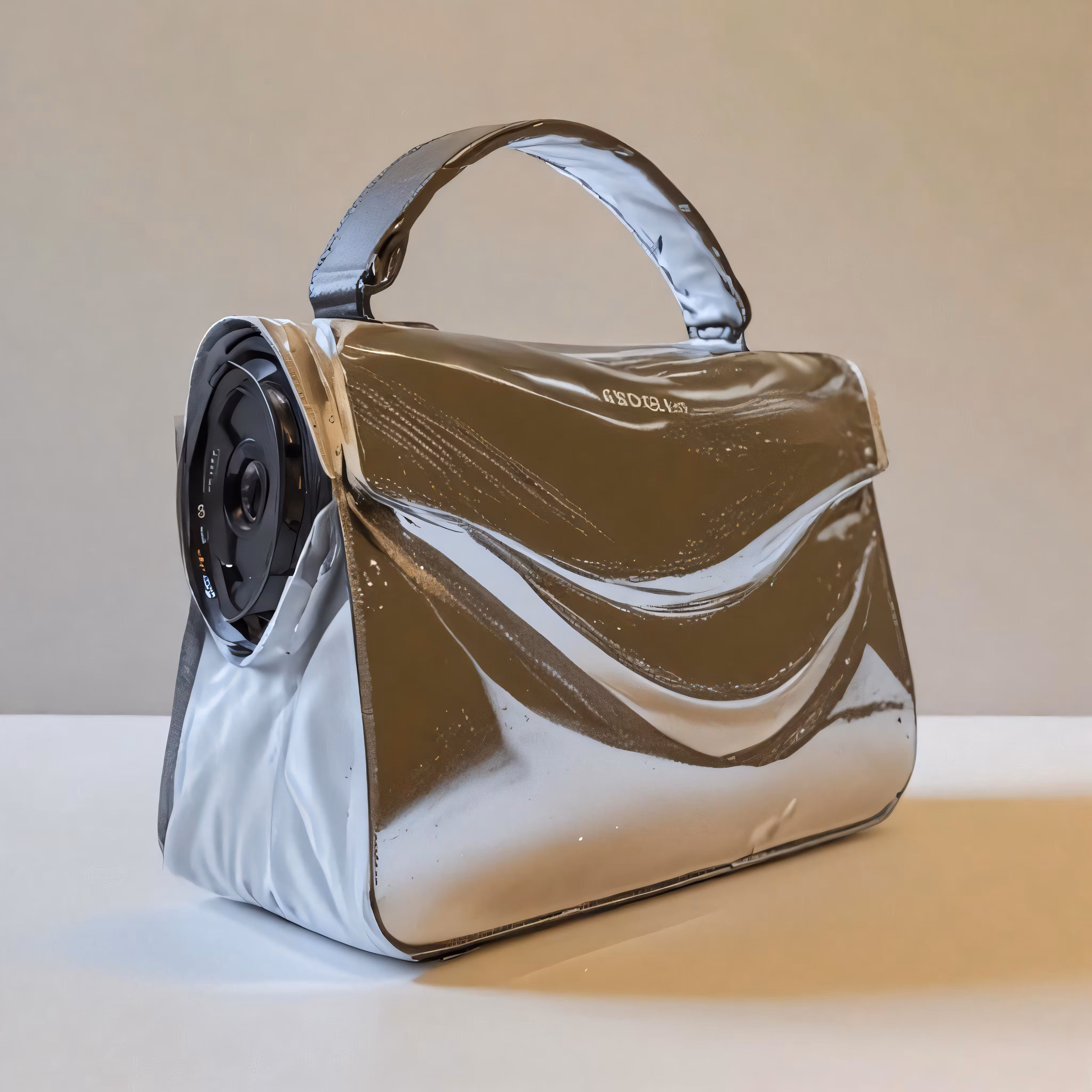 High resolution picture, free to use, an open metal purse with a shiny metal handle