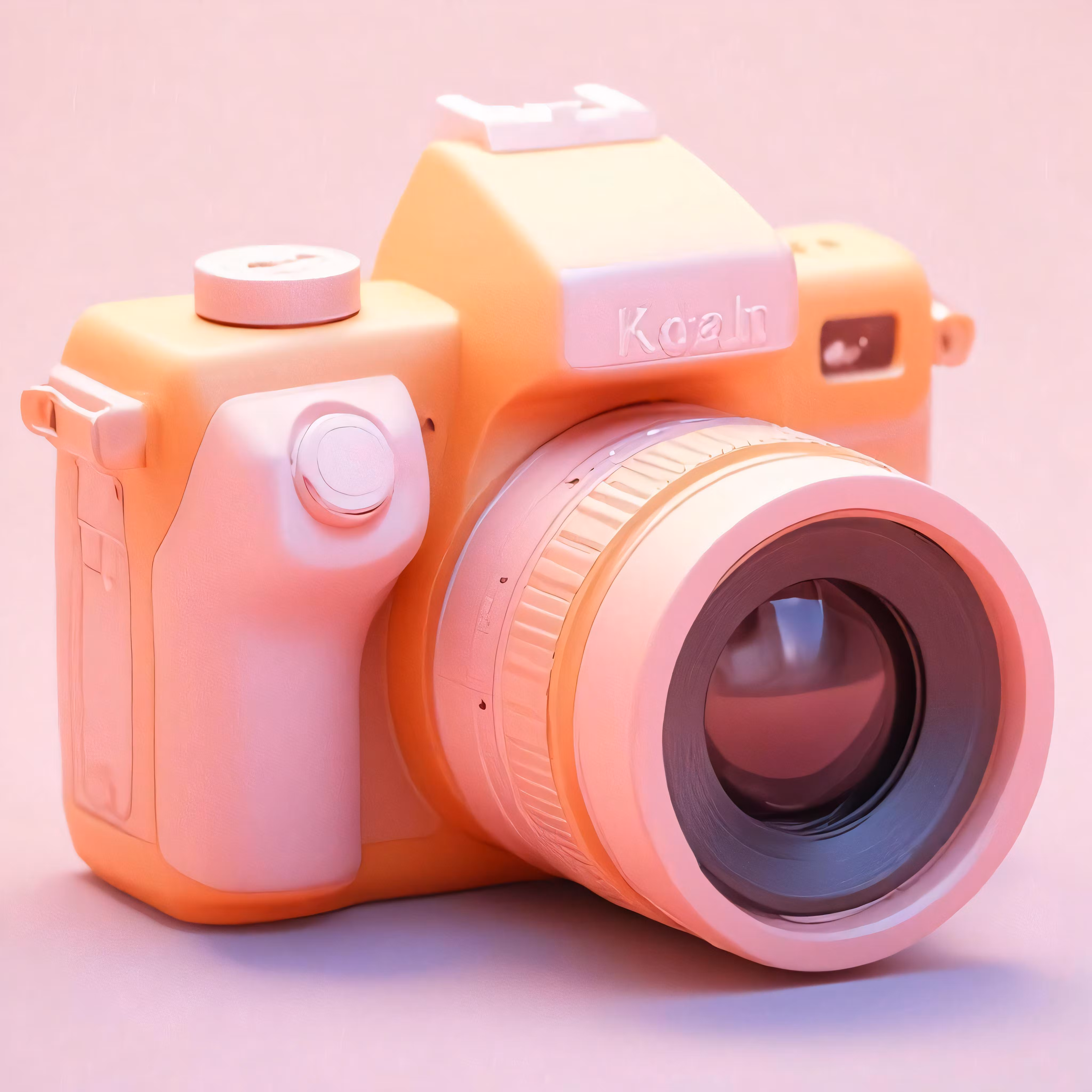 High resolution picture, free to use, an orange camera with a small flash in the lens