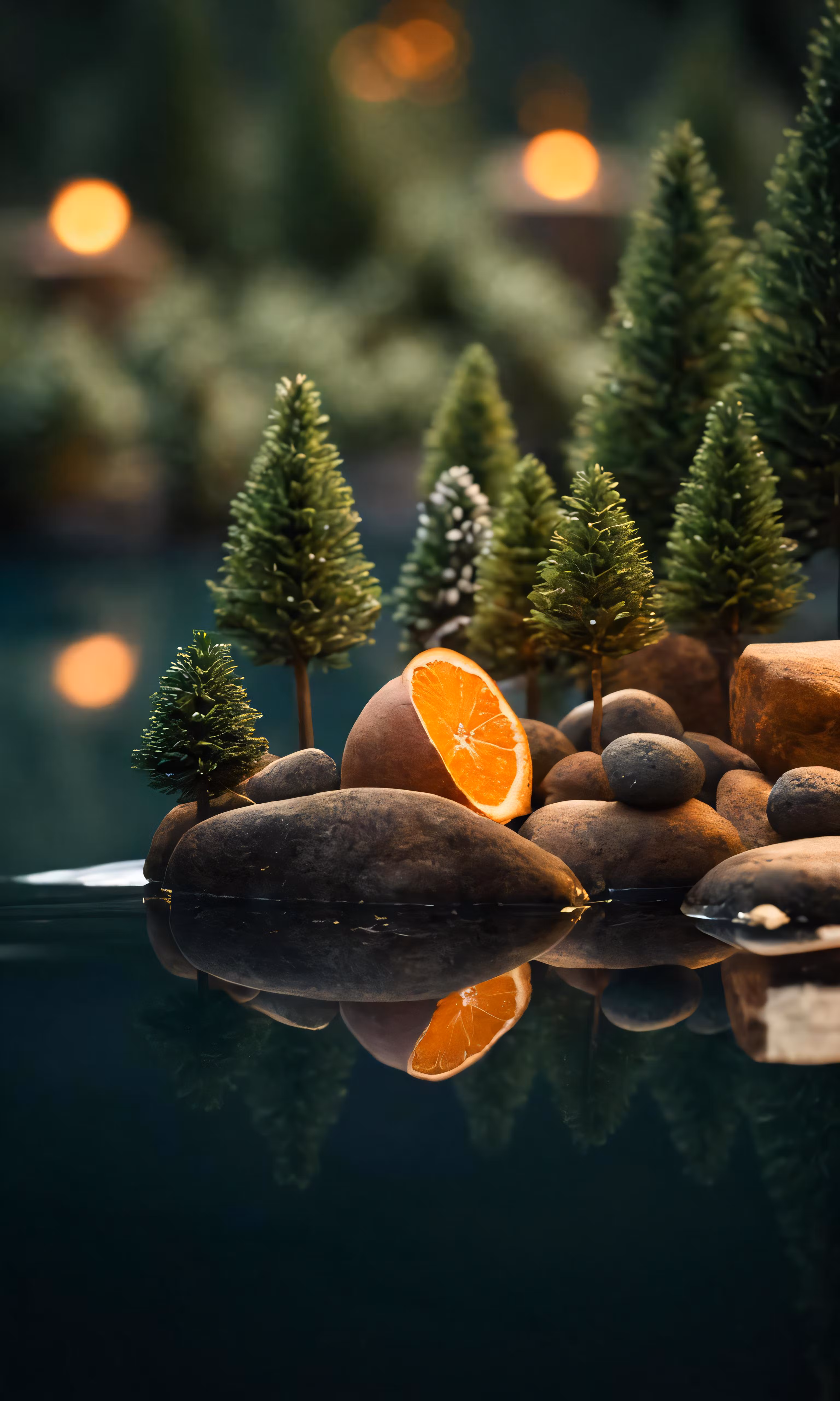 High resolution picture, free to use, an orange cut in half on top of a pile of rocks