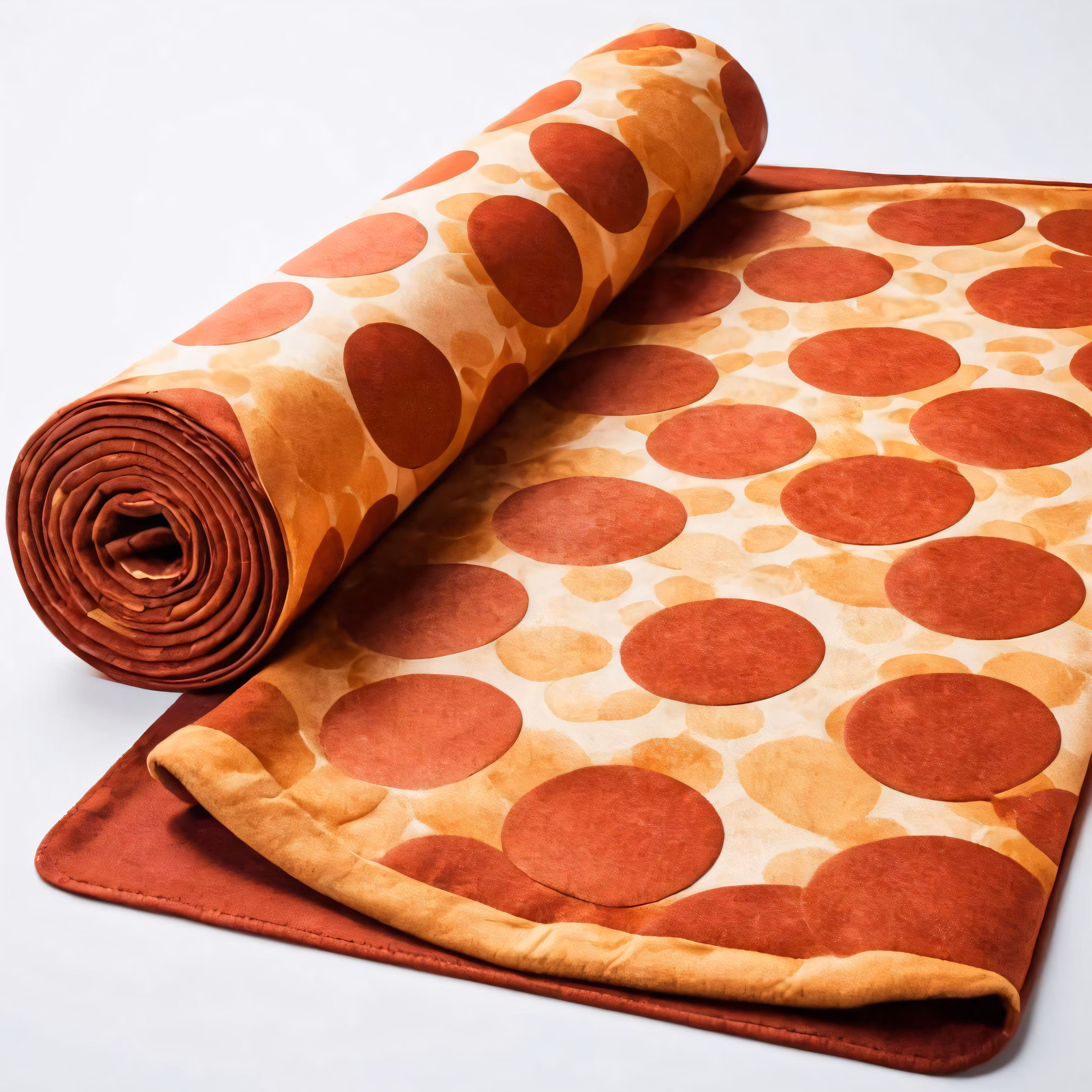 High resolution picture, free to use, an orange rug with a red mat and a roll of material