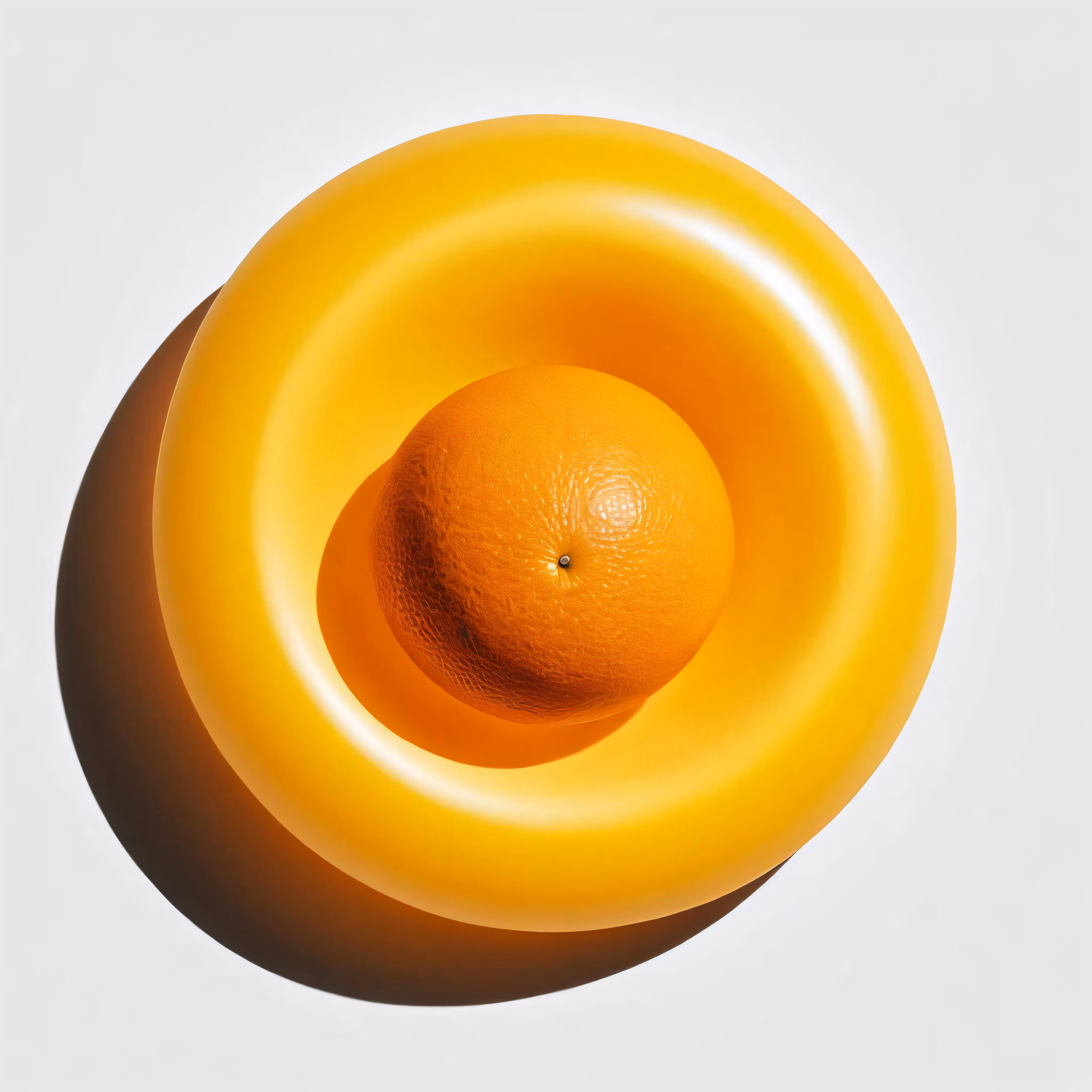 High resolution picture, free to use, an orange sits on top of a round yellow object
