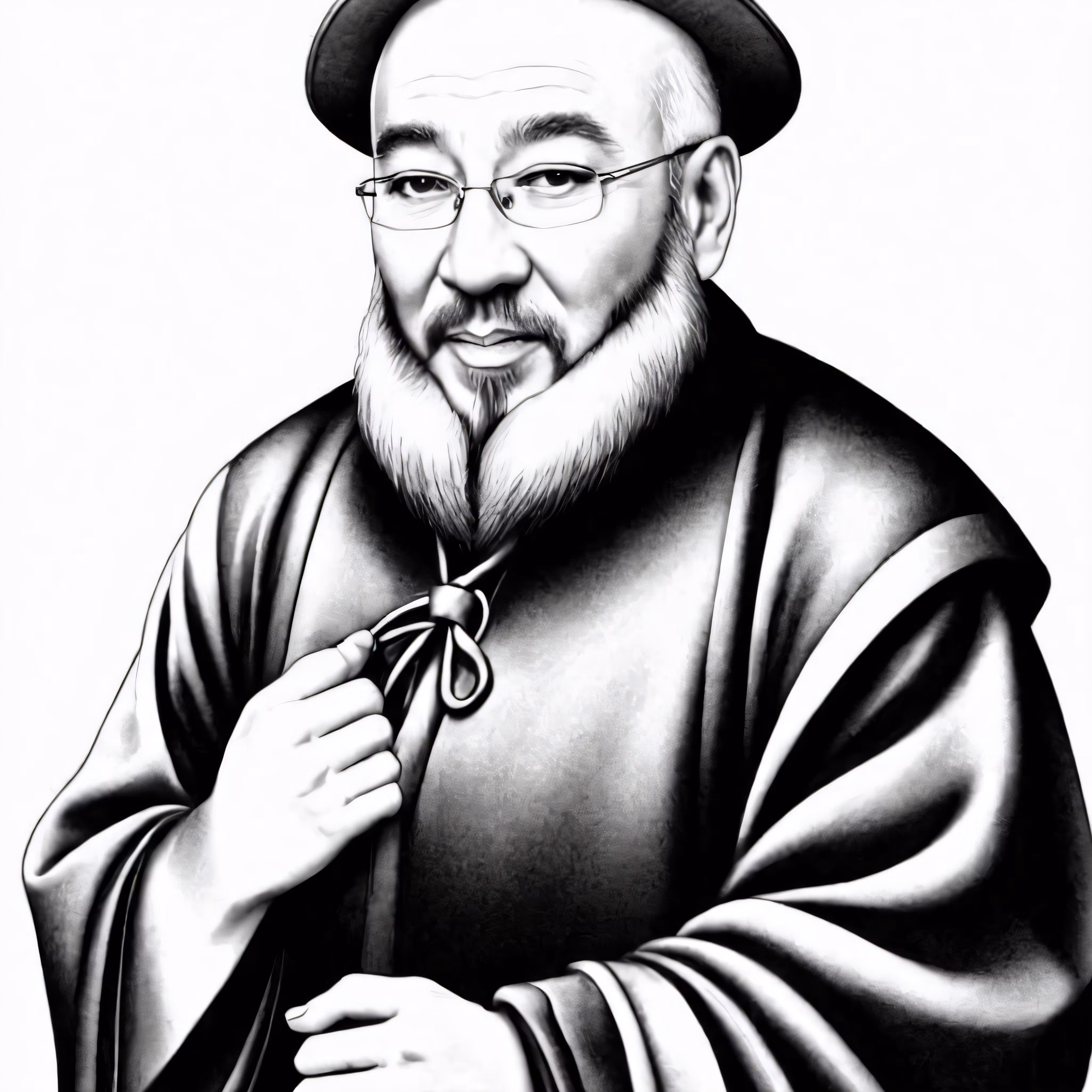 High resolution picture, free to use, an oriental style portrait with a priest wearing glasses and holding a small object