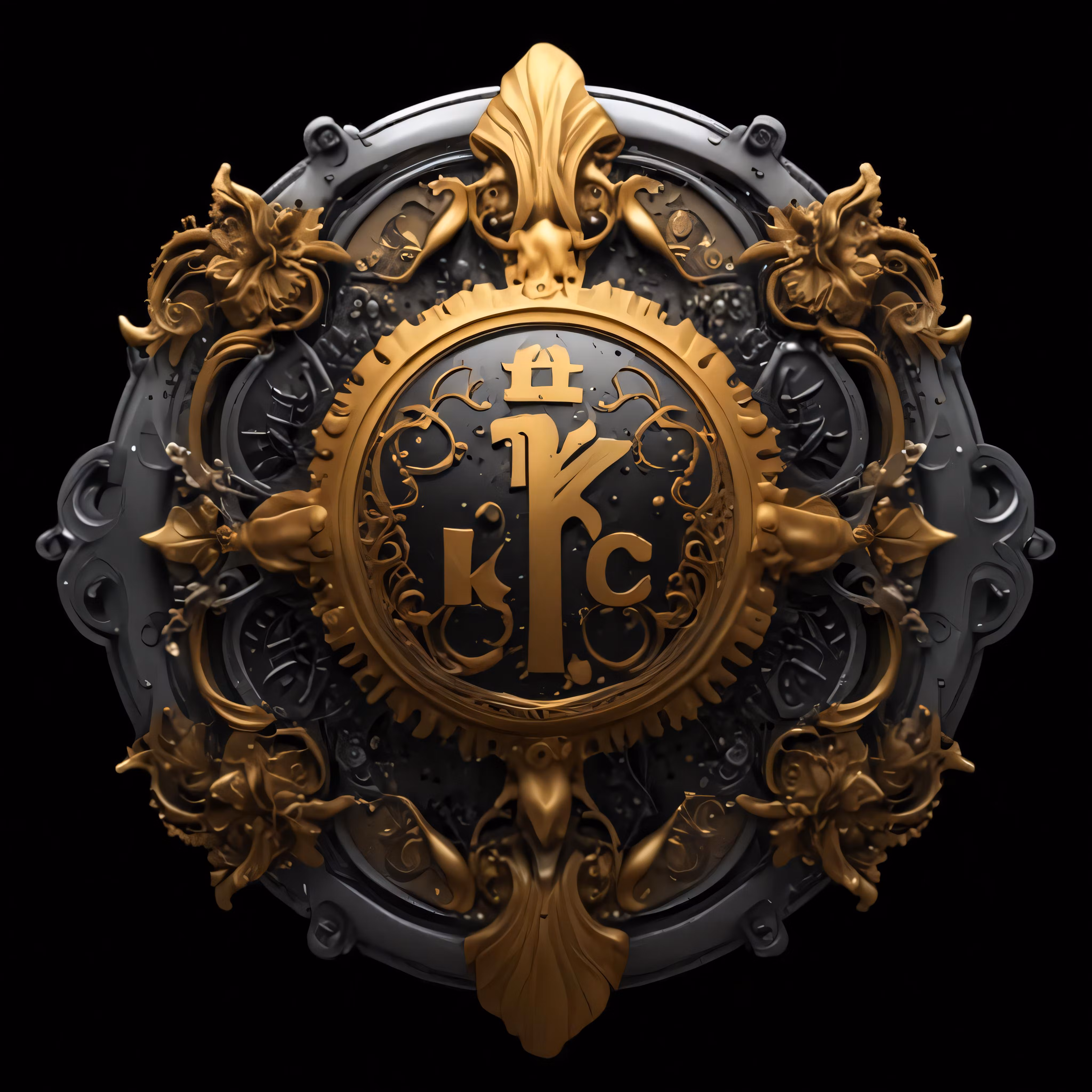 High resolution picture, free to use, an ornate, gold   colored logo with letters
