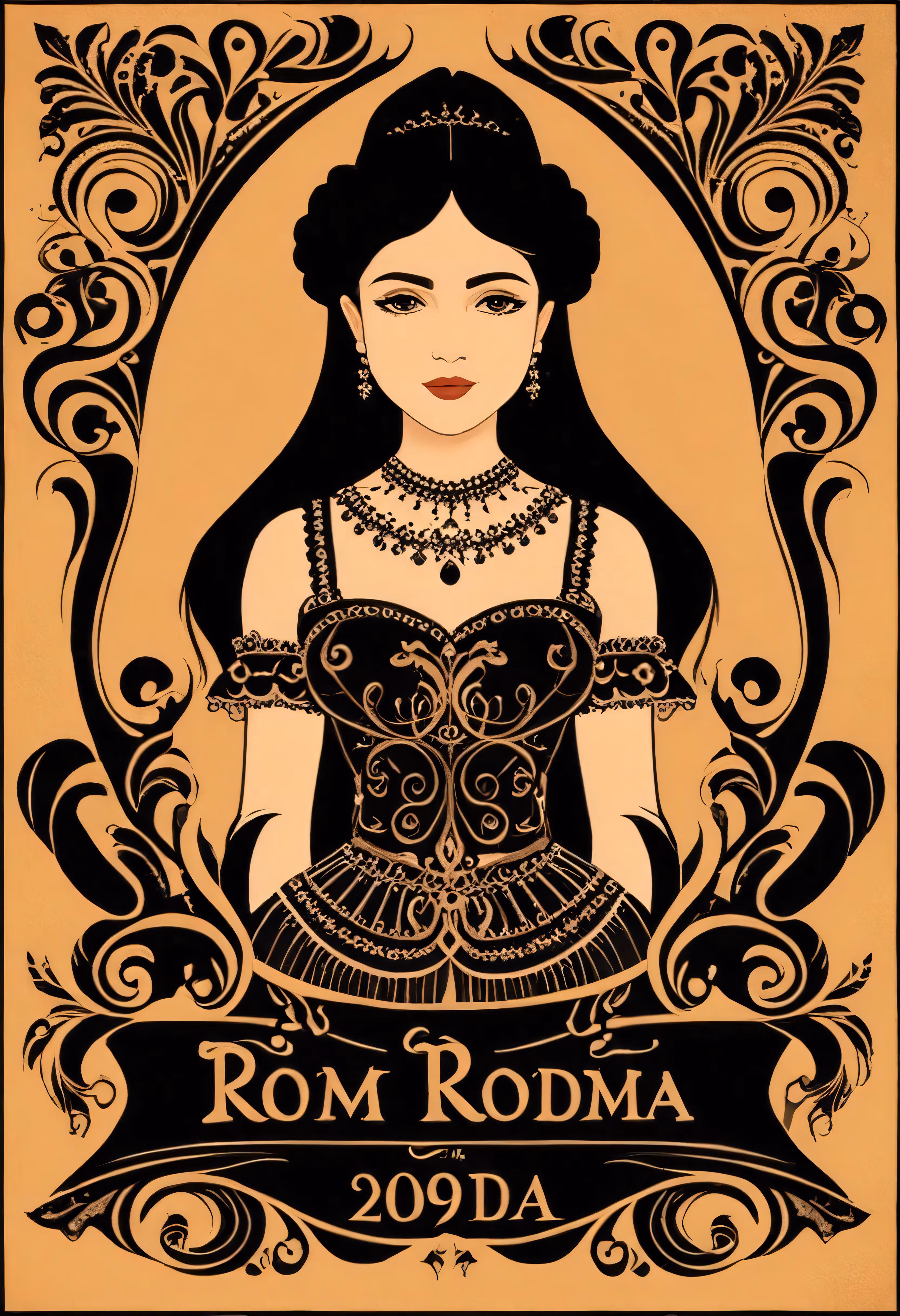 High resolution picture, free to use, an ornate design with the words roma roma, in black