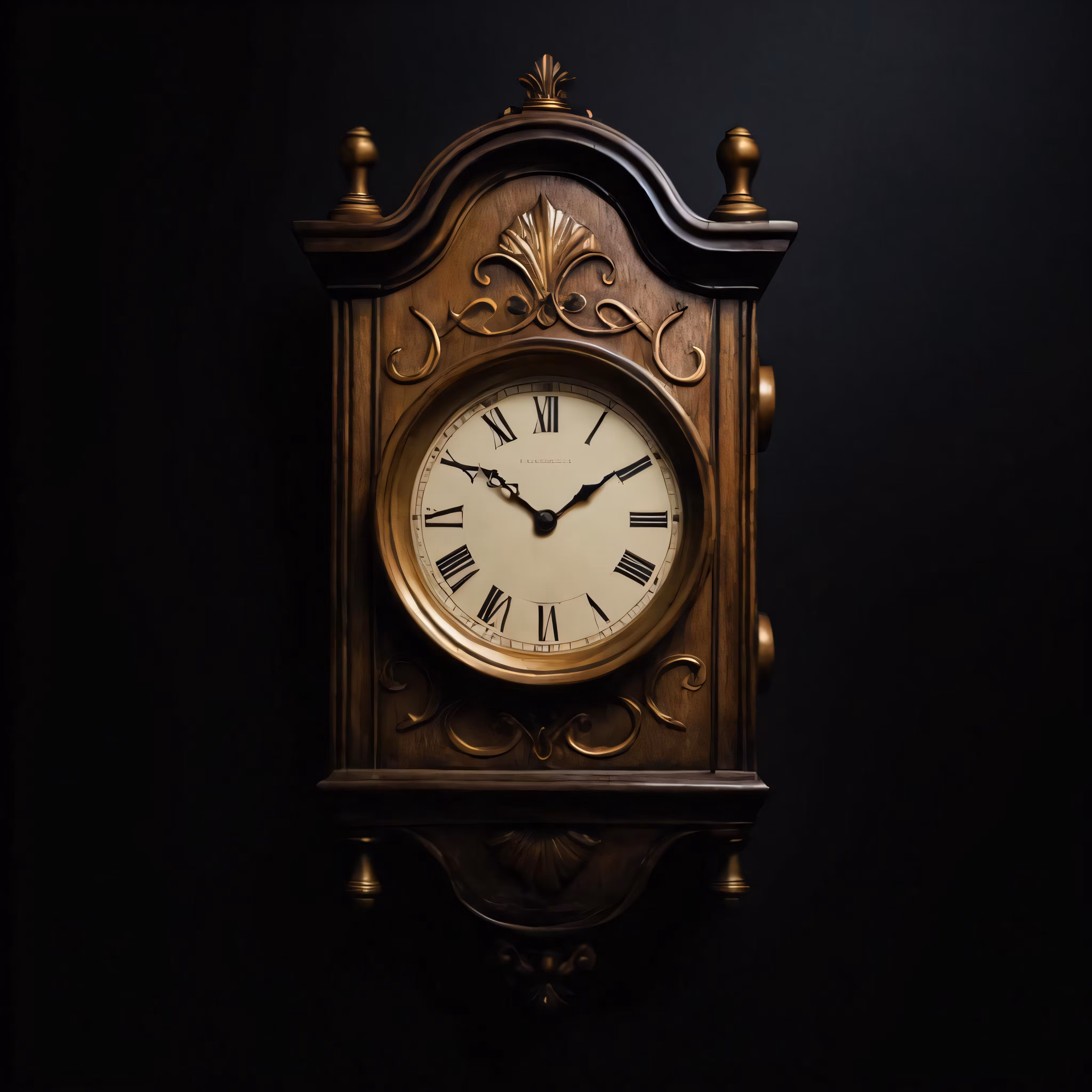 High resolution picture, free to use, an ornate golden clock is in the dark
