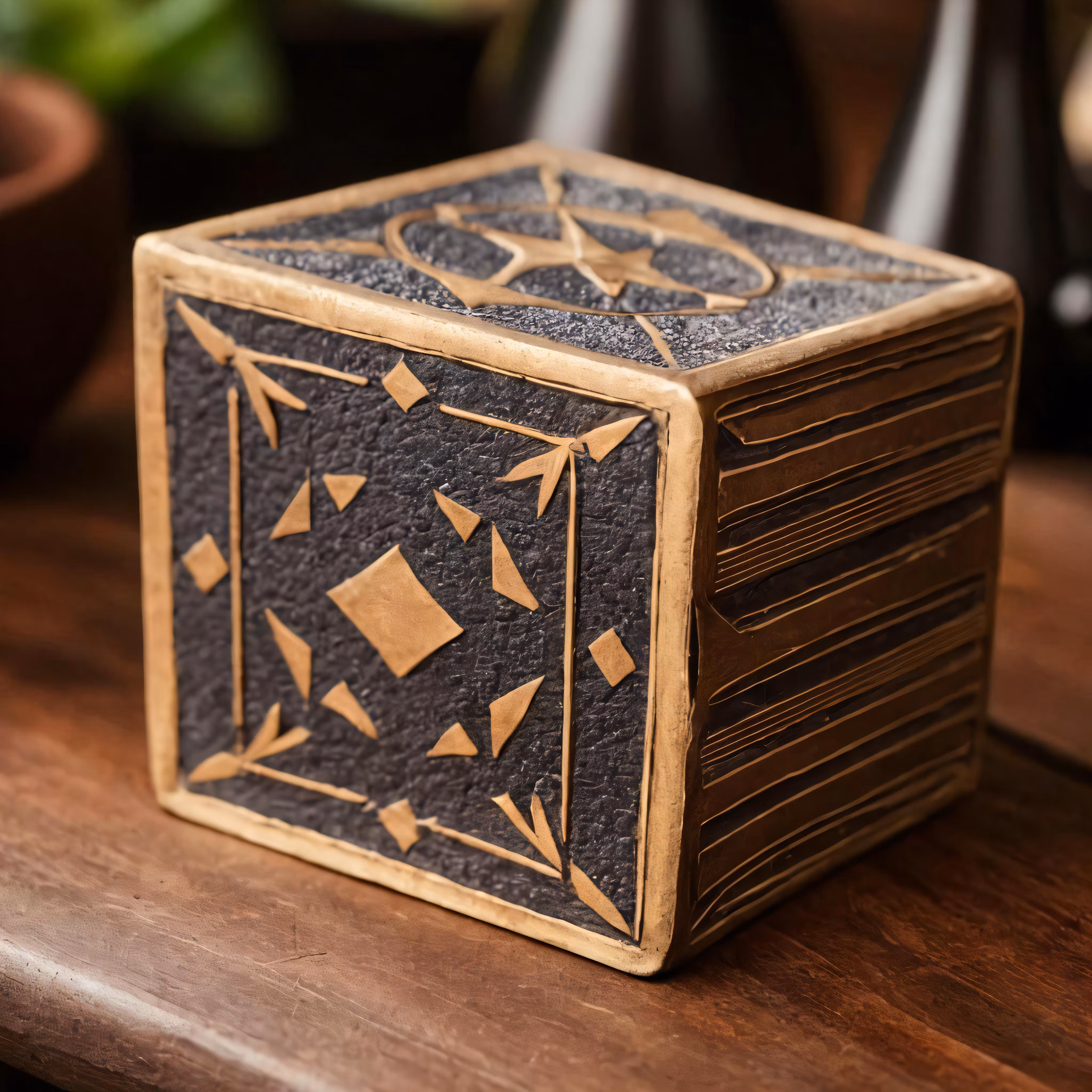 High resolution picture, free to use, an ornate wooden box has a decorative motif on it
