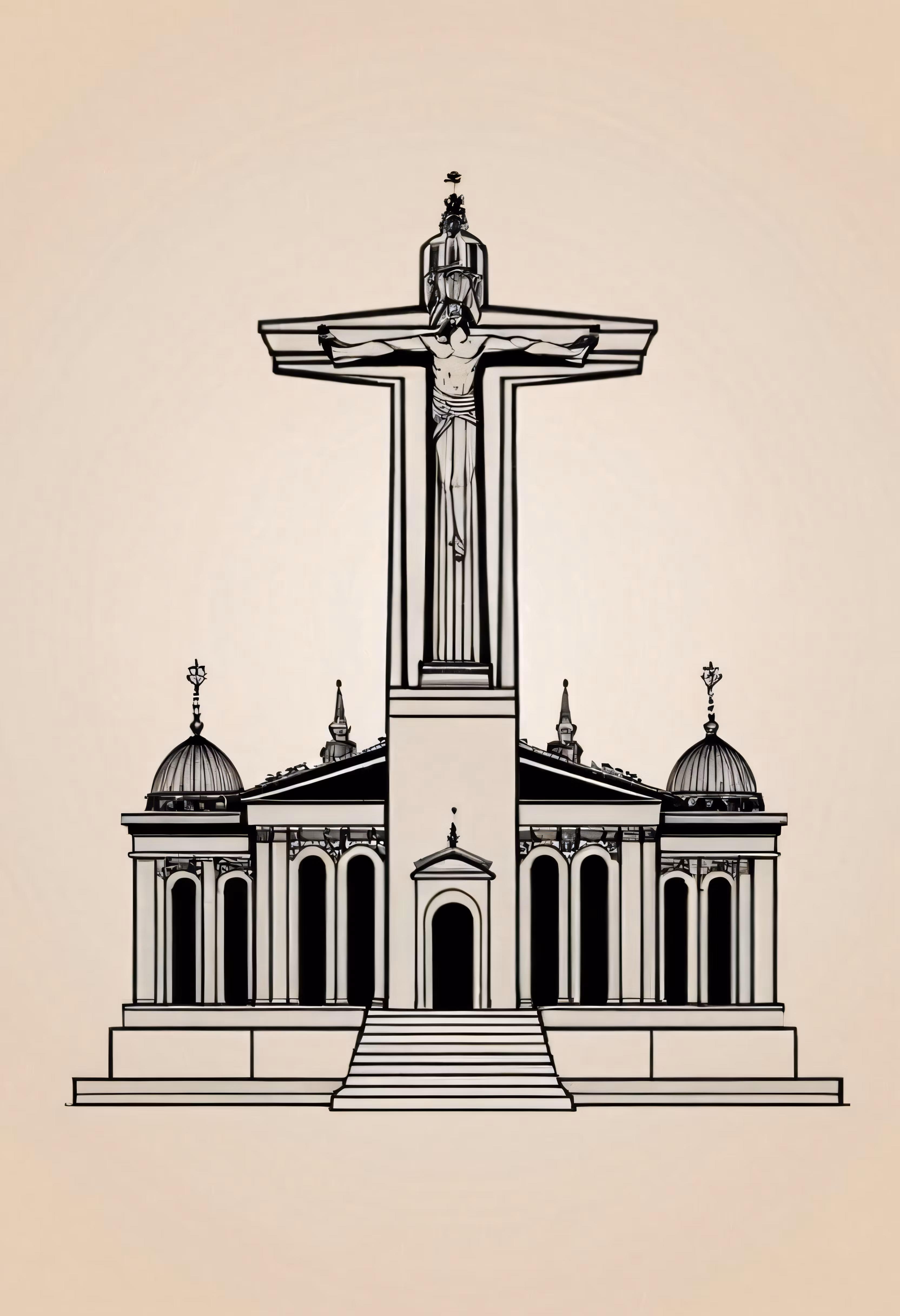 High resolution picture, free to use, an outline of the monument of jesus in front of a beige wall