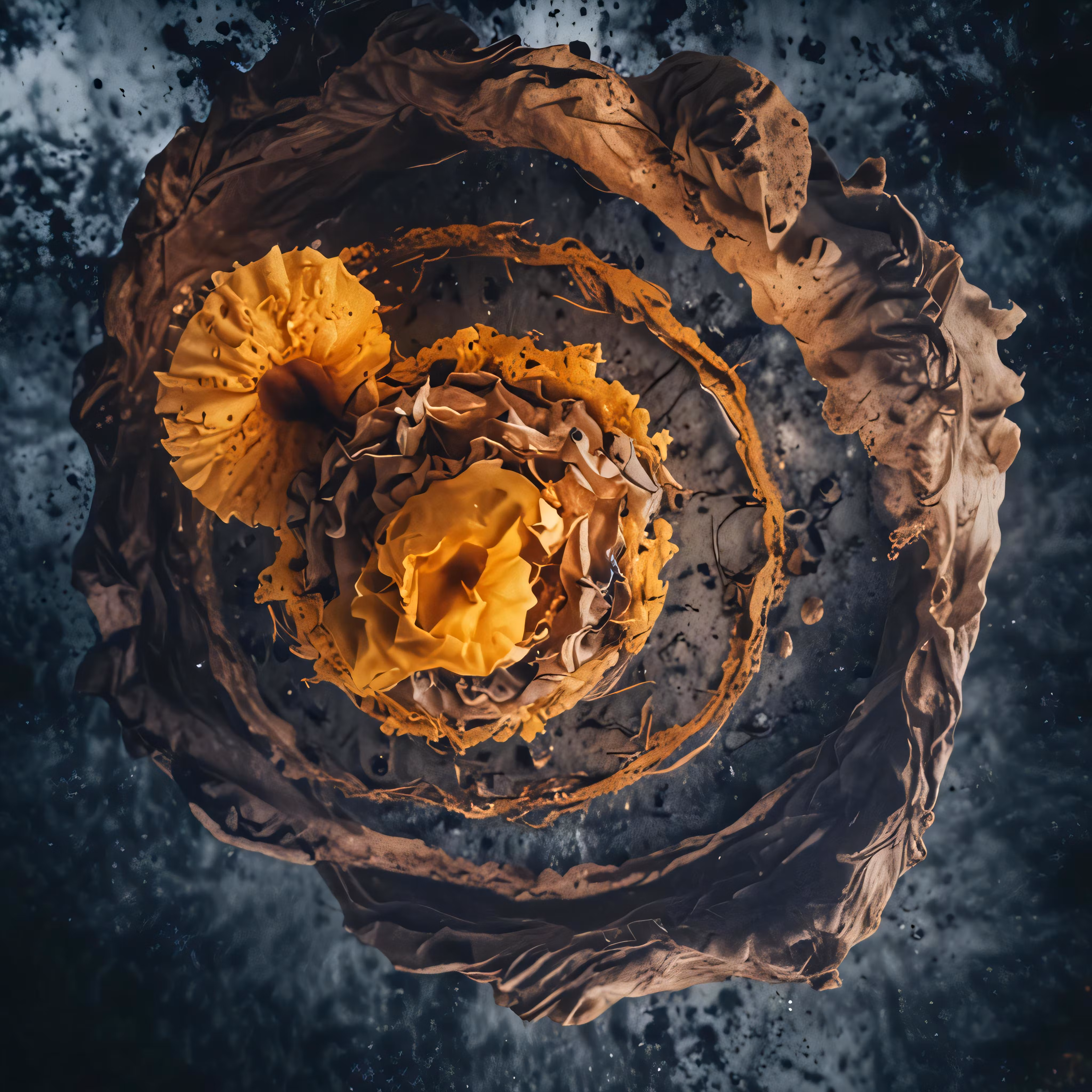High resolution picture, free to use, an overhead view of a round dish with flowers in the center