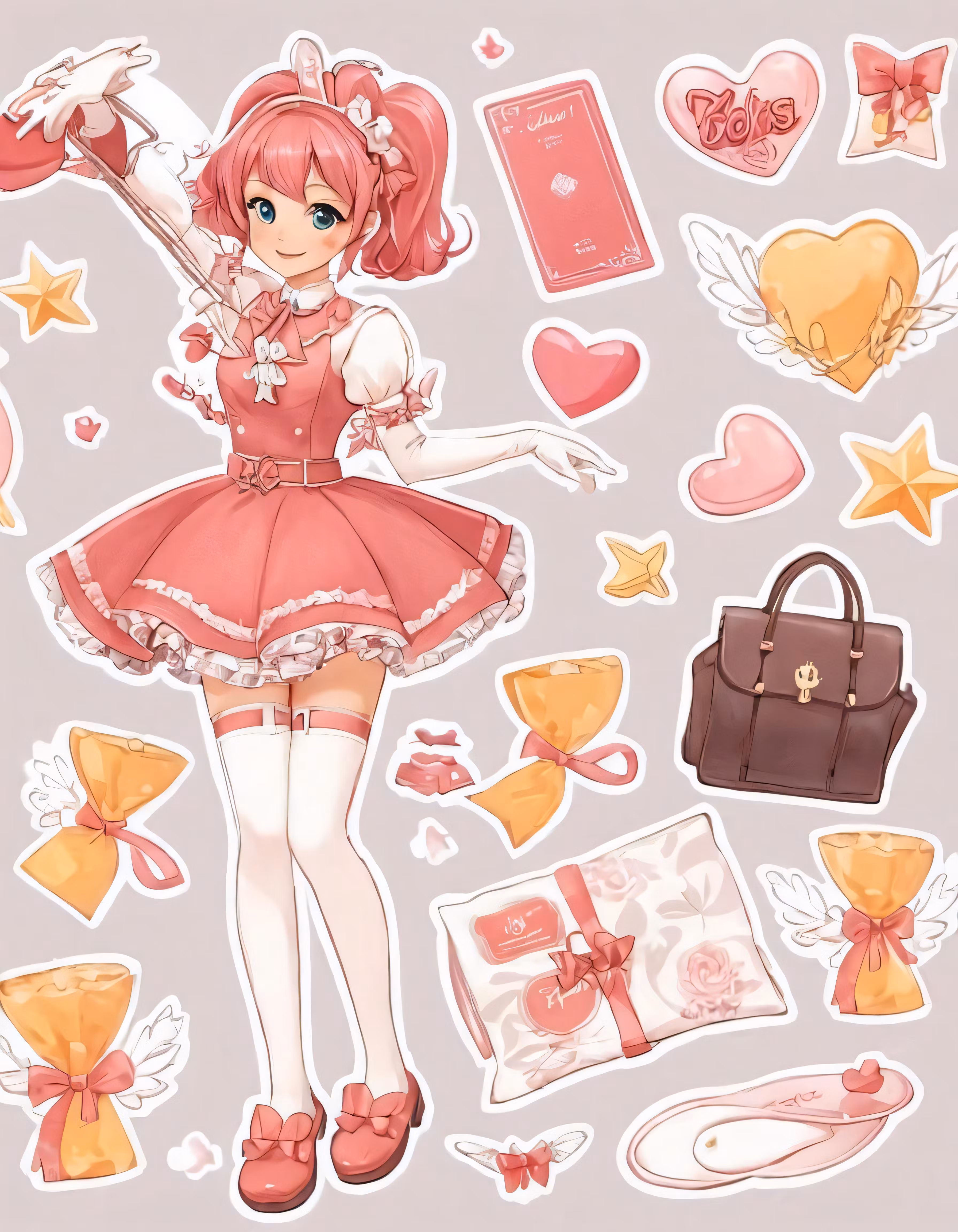High resolution picture, free to use, anime girl holding up some items in her hand