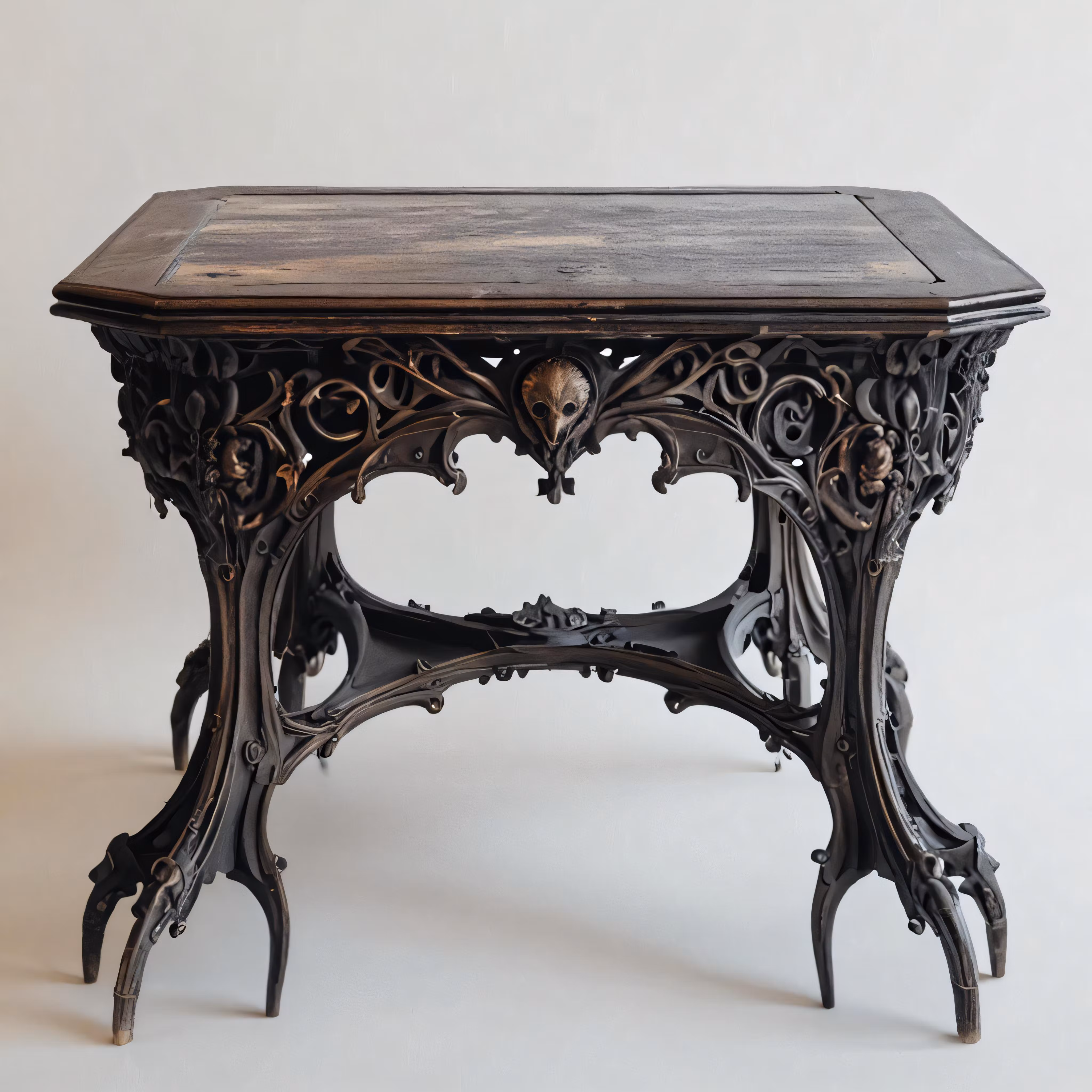 High resolution picture, free to use, antique wood table, with intricate carved decoration