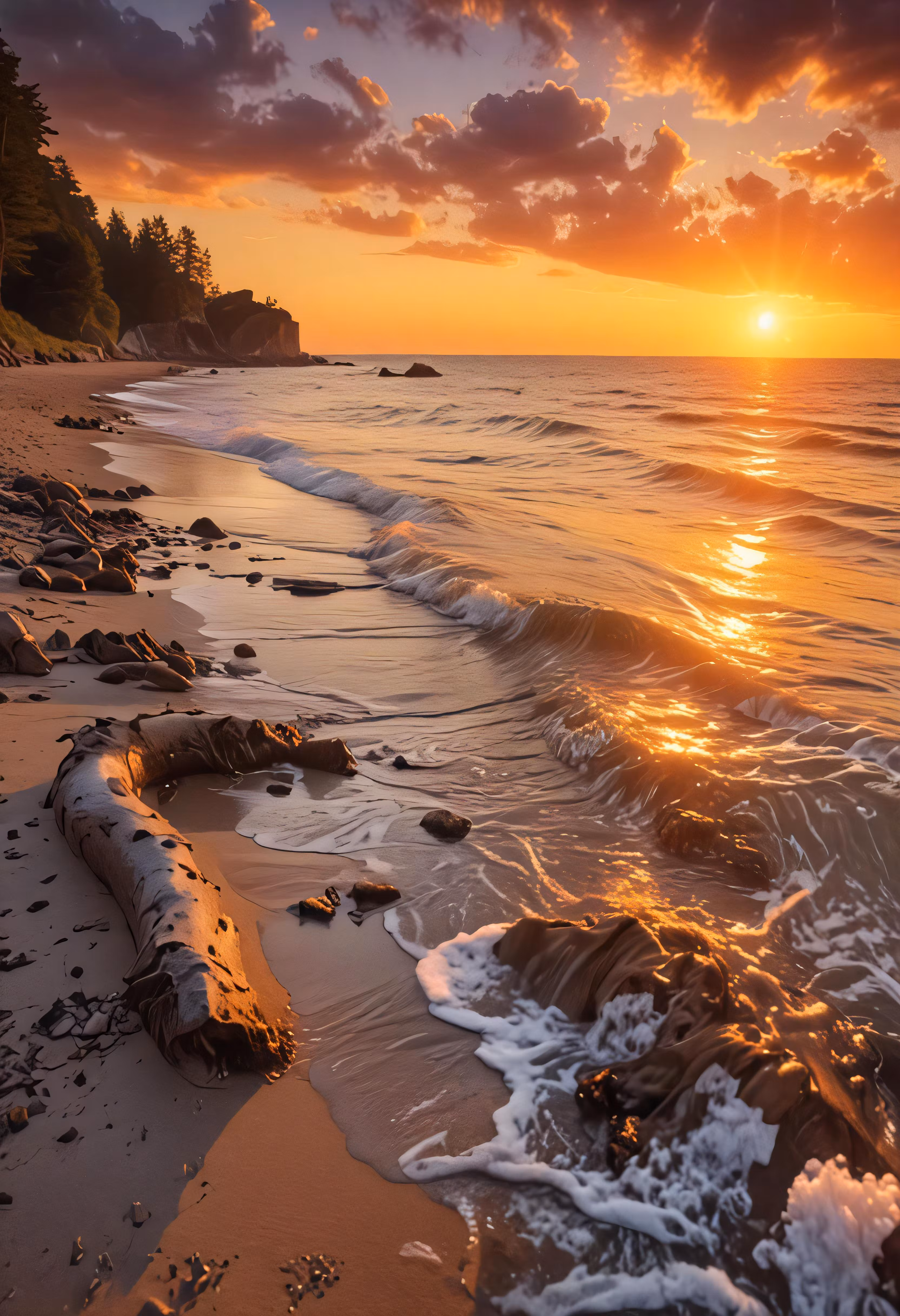High resolution picture, free to use, beach and shoreline on the shoreline in front of trees